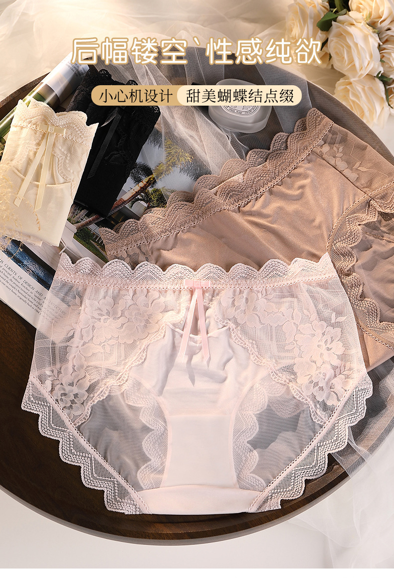 Большие размеры французские чистые кружевные трусики женские 200 кг полые сетчатые пряжи сексуальные прозрачные хлопчатобумажные антибактериальные трусы 10A