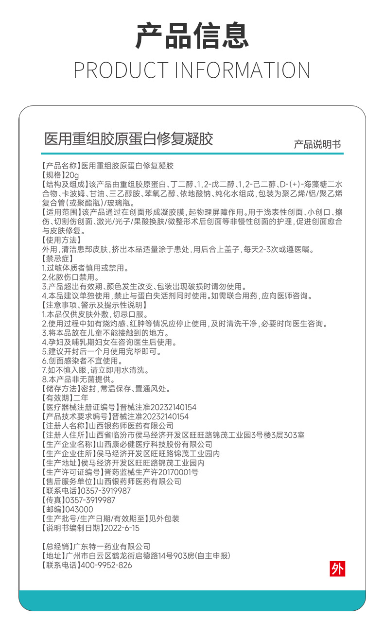В наличии Оптом Медицинский рекомбинантный гуманизированный коллагеновый гель типа III механический шрифт послеоперационный крем для восстановления кожи