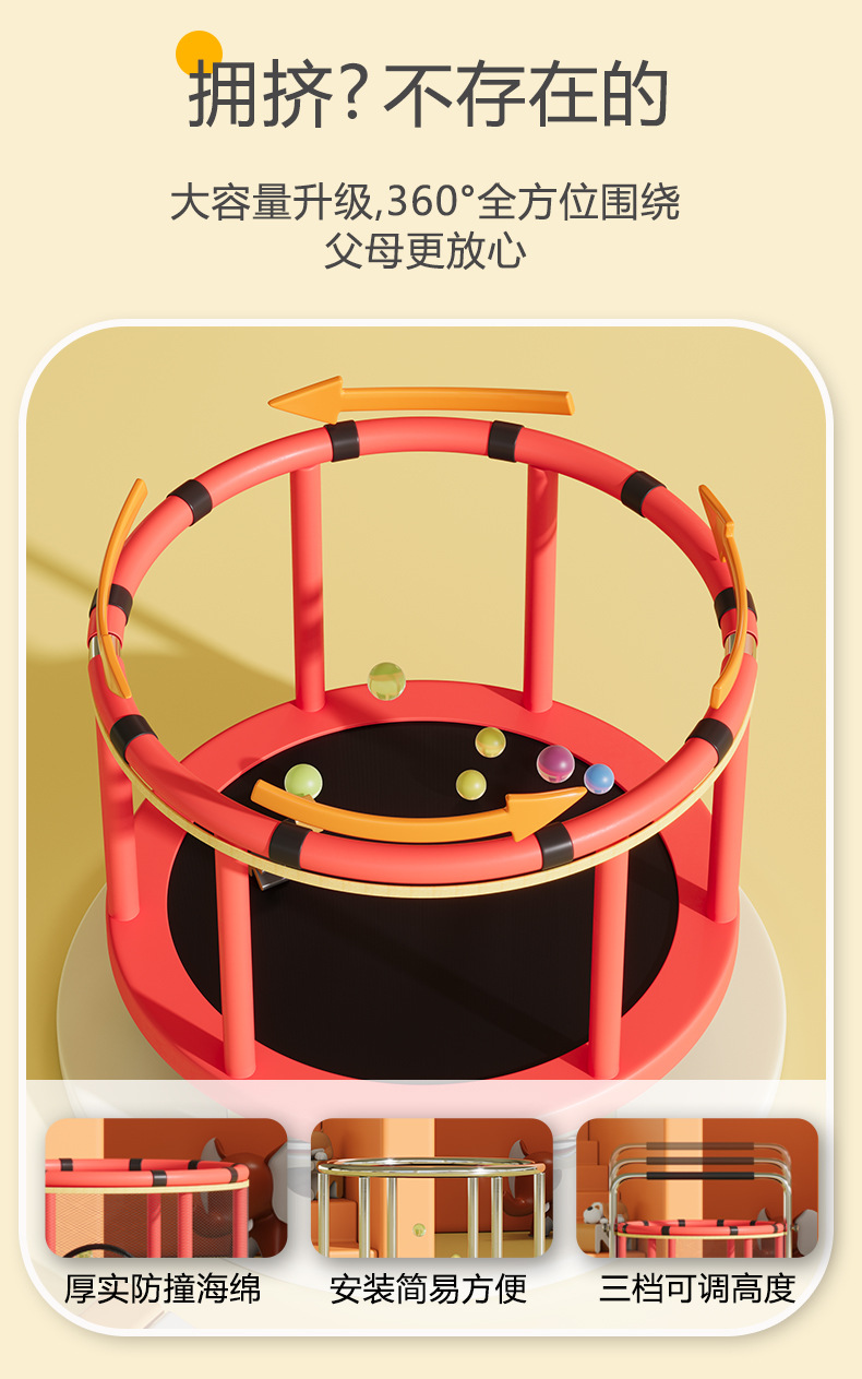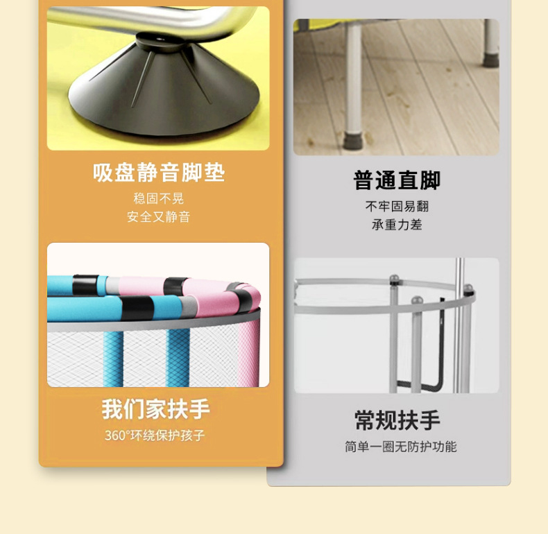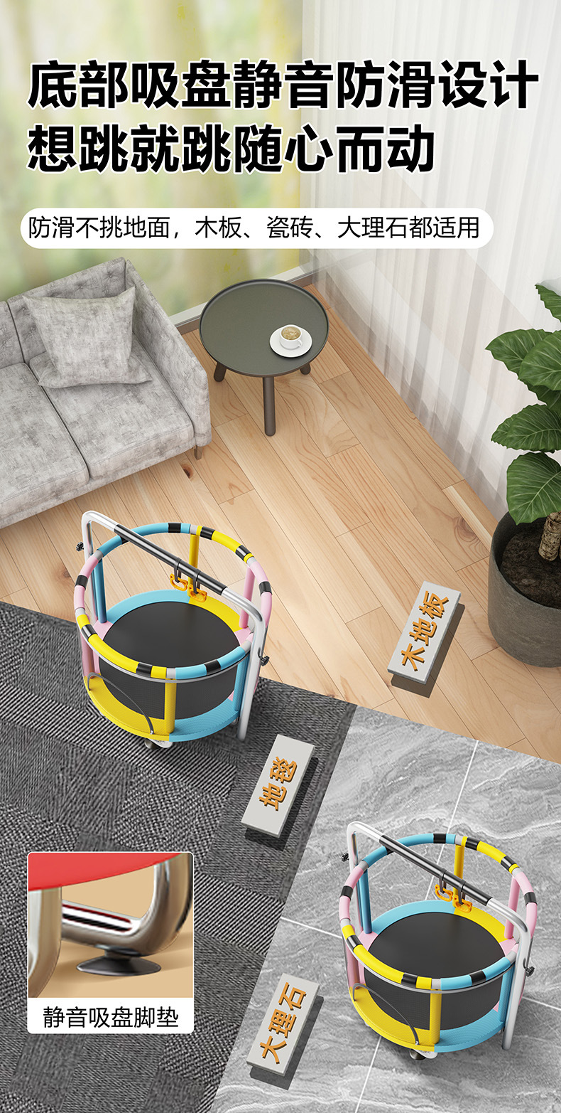 Батут Hedgehog для фитнеса и игр, для домашнего использования, детский батут для прыжков в помещении с защитной сеткой, семейный батут с присосками против опрокидывания.