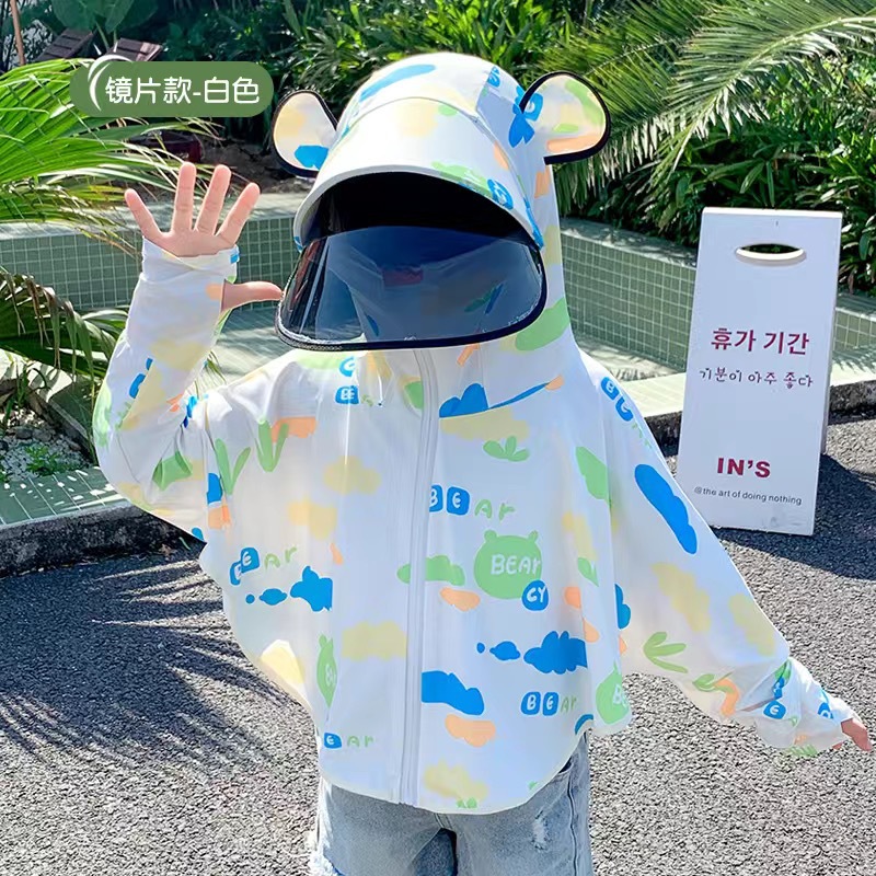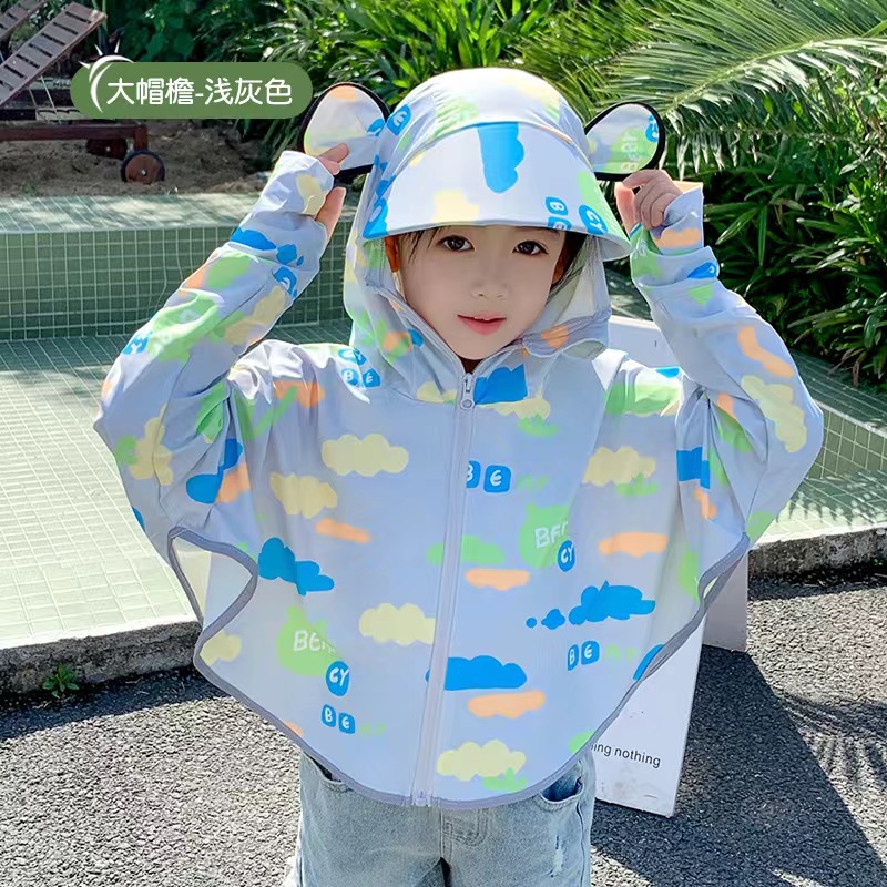 Детская солнцезащитная одежда, летняя тонкая модель, солнцезащитная одежда из ледяного шелка для мальчиков и девочек, милая дышащая накидка для малышей