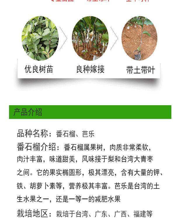 1 жемчужная гуава [саженец грязевого шара]; 1 императорское белое сердце гуавы [саженец грязевого шара]; 1 красная гуава [саженец грязевого шара]; 1 рубиновая гуава [саженец грязевого шара]