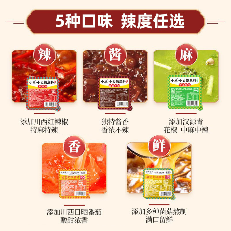 Пряный вкус 50 г [супер острый]; Аромат зеленого перца 50 г [средне острый]; Соус со вкусом 50 г [не острый аромат соуса]; Грибной суп со вкусом 50 г [не острый и вкусный]; Томатный вкус 50 г [кисло-сладкий вкус]