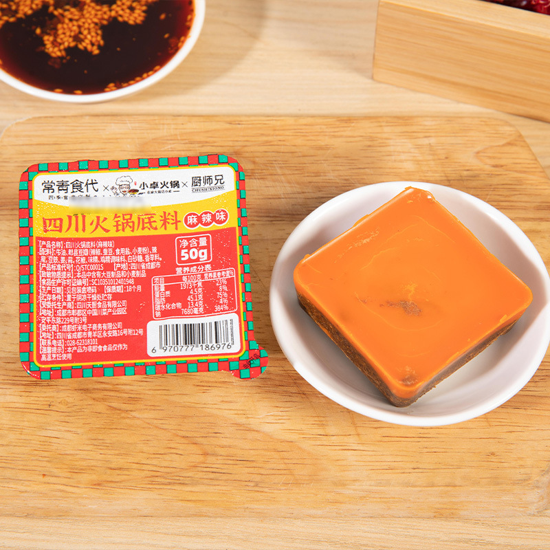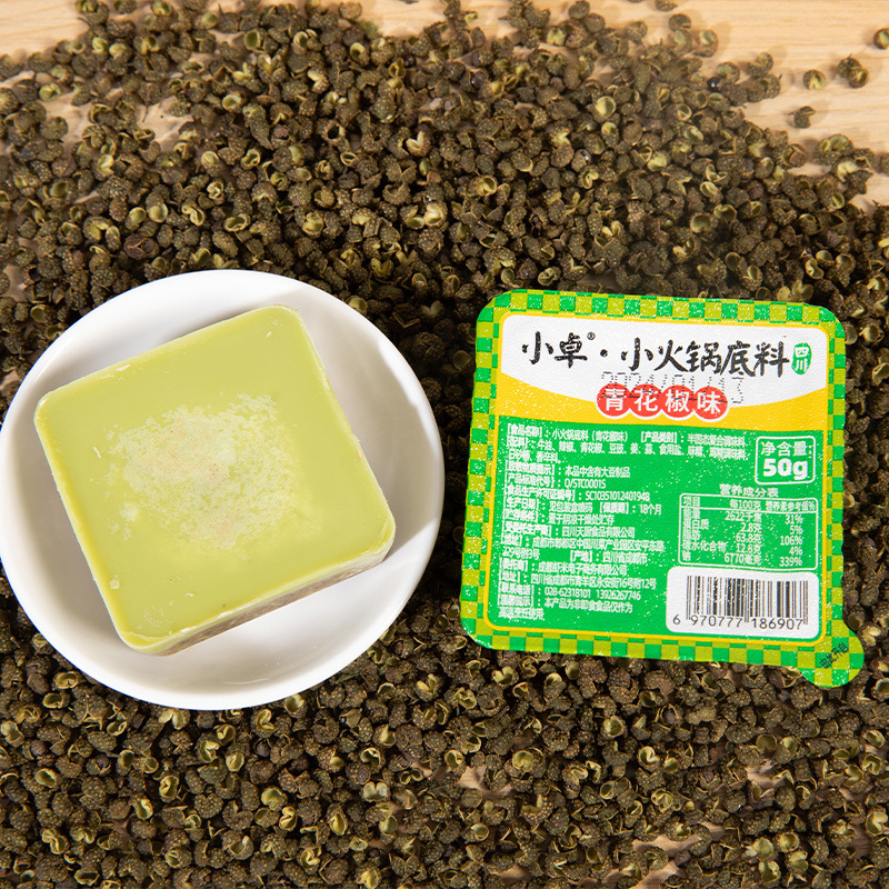 База для хот-пота Xiao Zhuo, 50 г, острая, со вкусом зеленого перца, кусочки, на масляной основе, очень острая