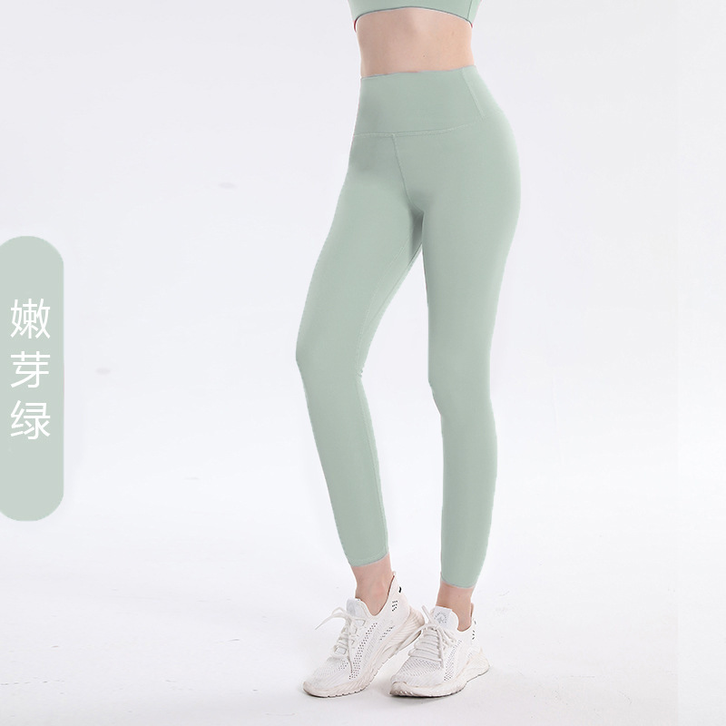 Обнаженные европейские и американские бесшовные длинные быстросохнущие женские персиковые спортивные узкие штаны для йоги с высокой талией для бега и подъема бедер