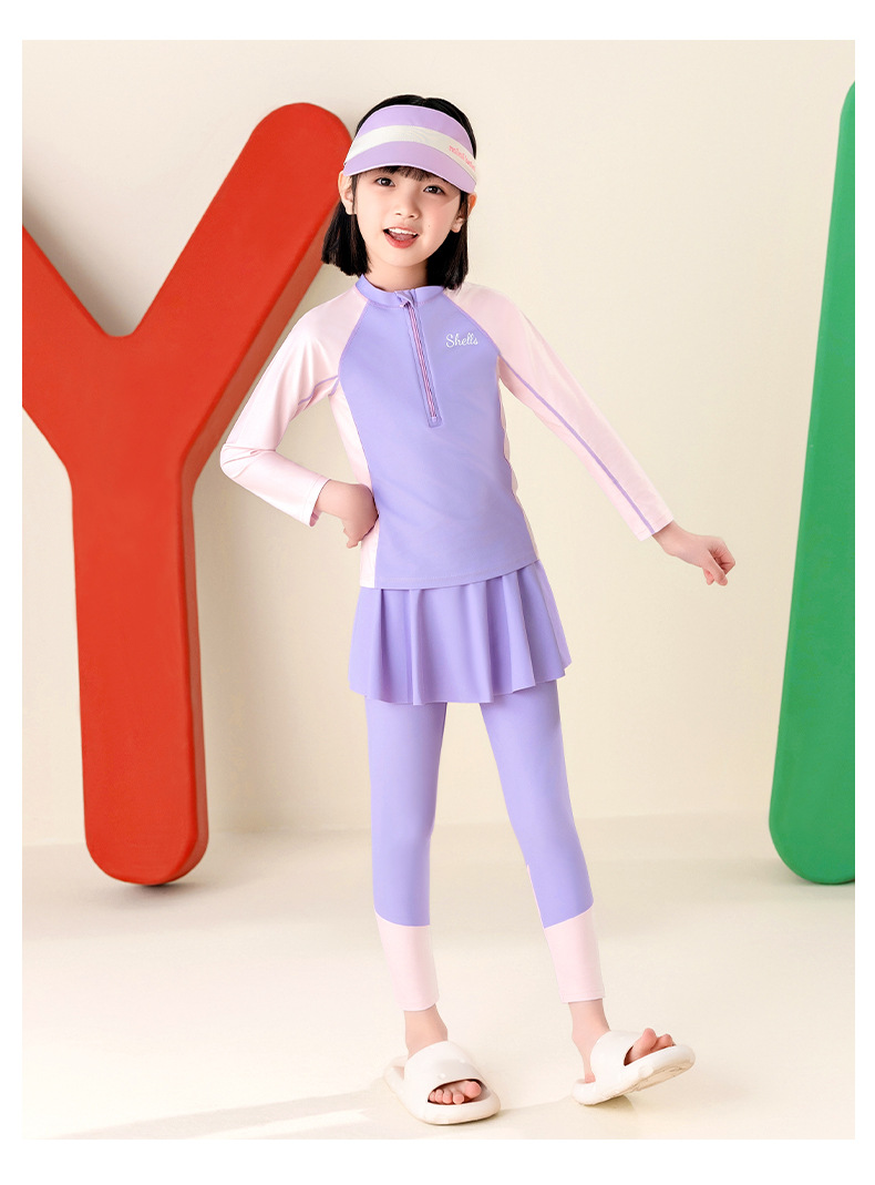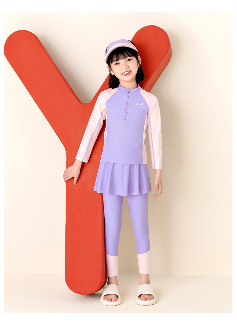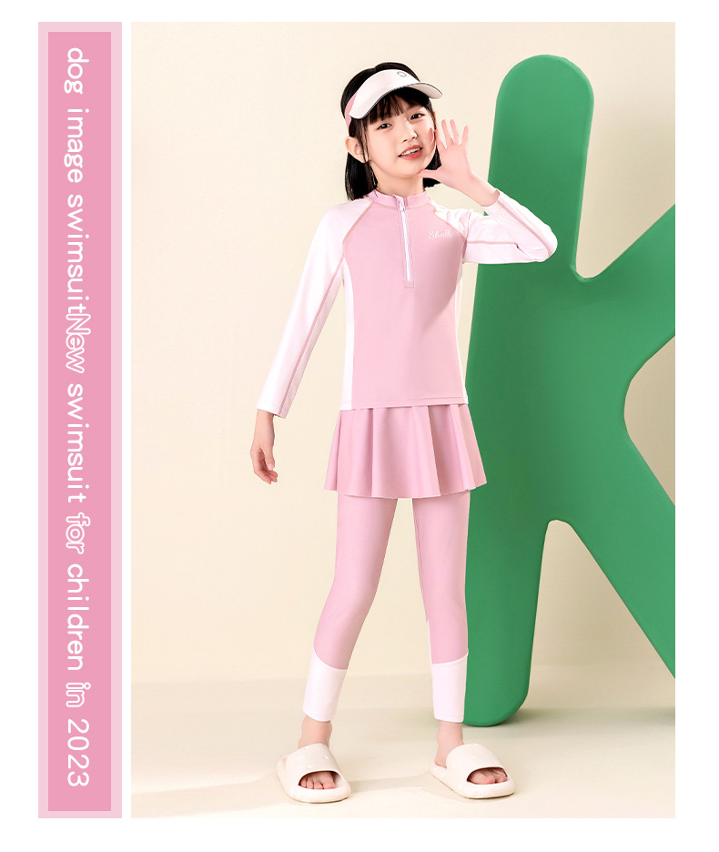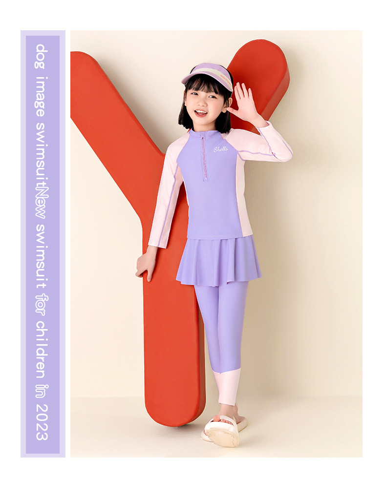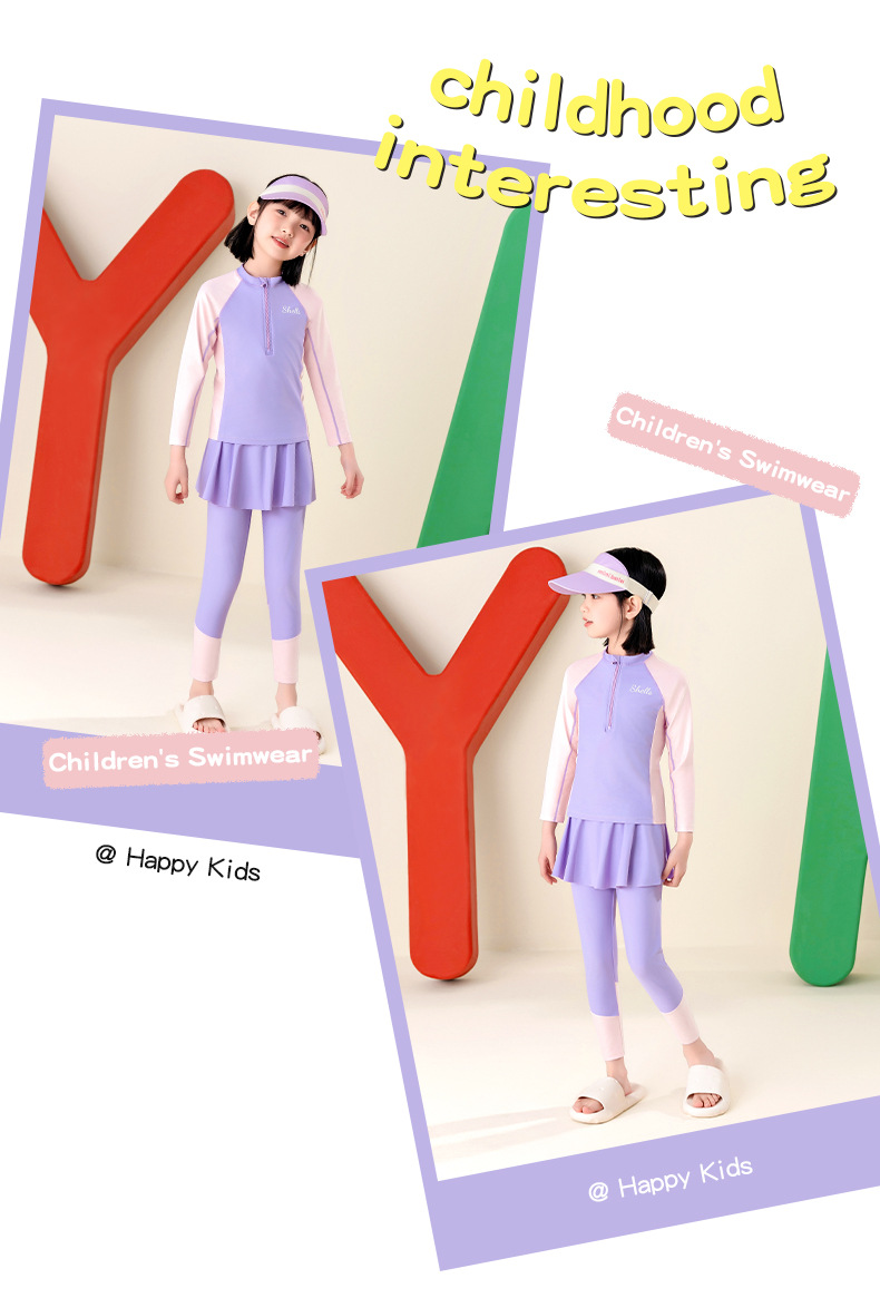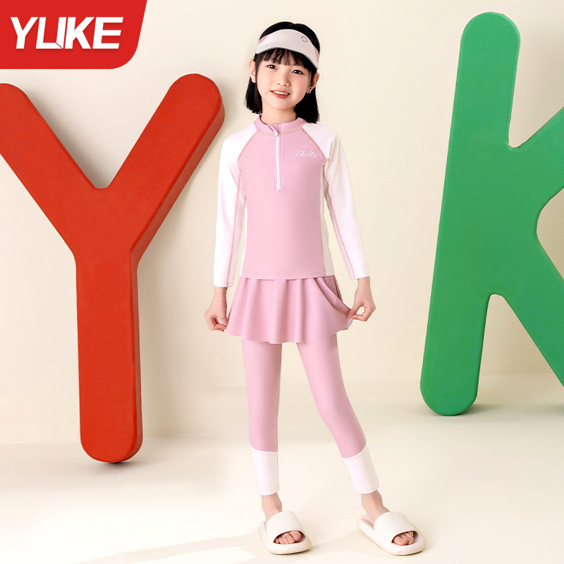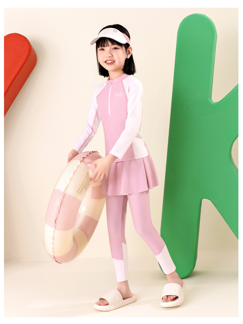 Детский купальник сплит для девочек 2024 Дети с длинными рукавами брюки солнцезащитный купальник для девочек консервативное плавание оптом