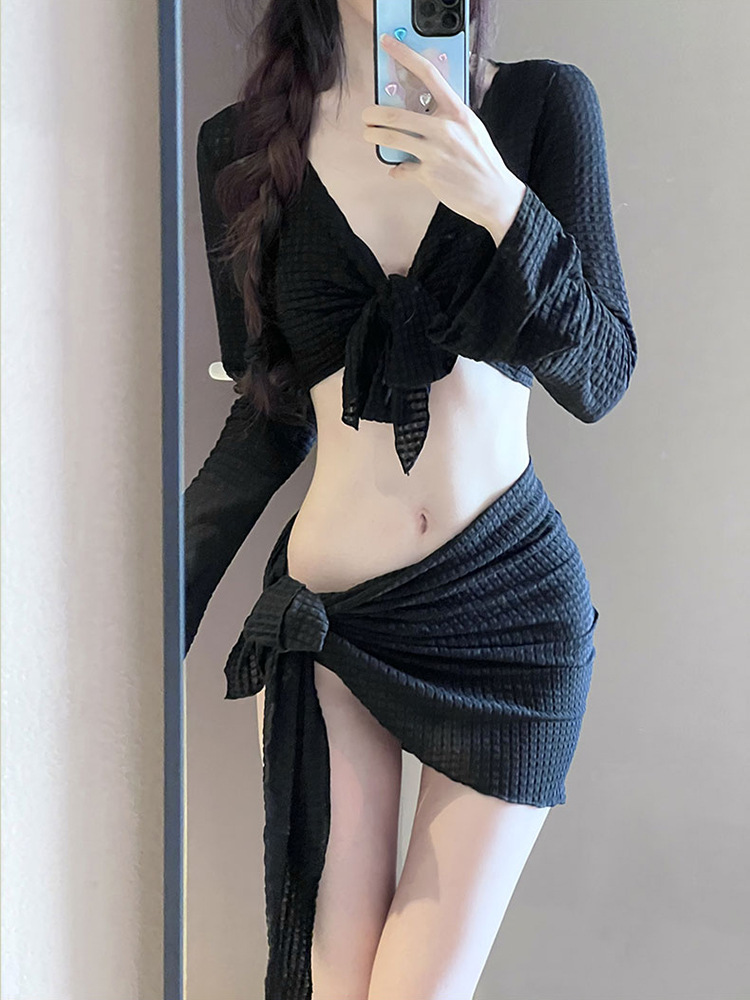 Женский купальник бикини 2025, новый комплект из четырех предметов, высококачественный сексуальный раздельный купальник с длинными рукавами, однотонный, для горячих источников
