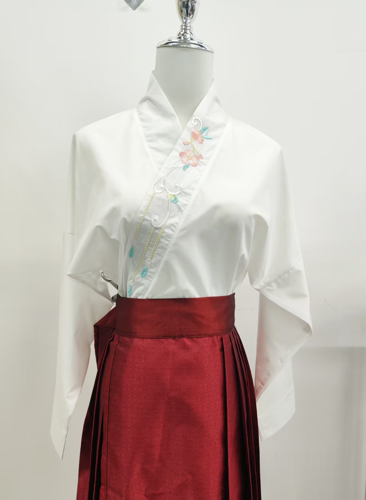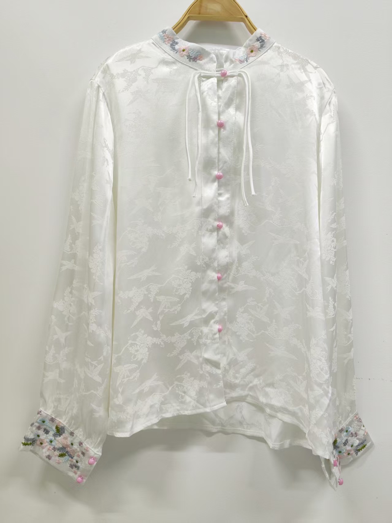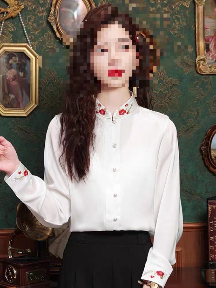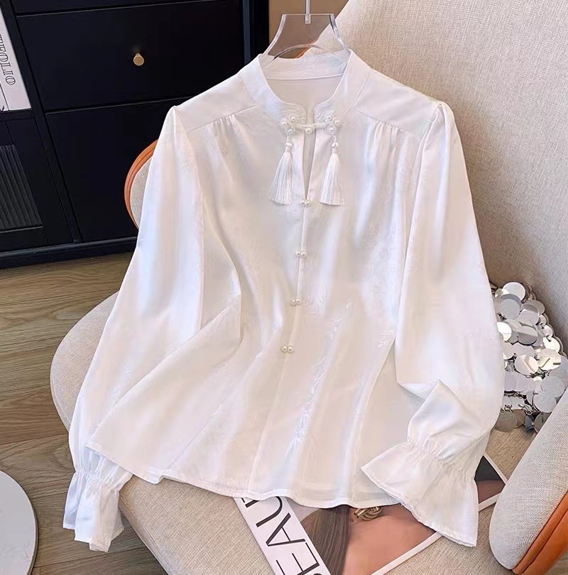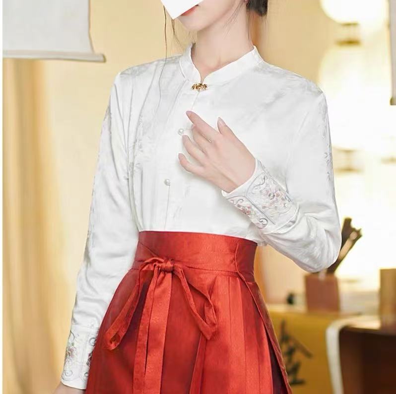 Новый китайский стиль Пряжка белая жаккардовая вышитая рубашка женская с длинным рукавом Ретро Республика Китай стиль жилет юбка Топ соответствие