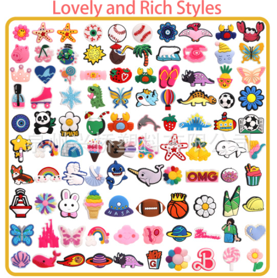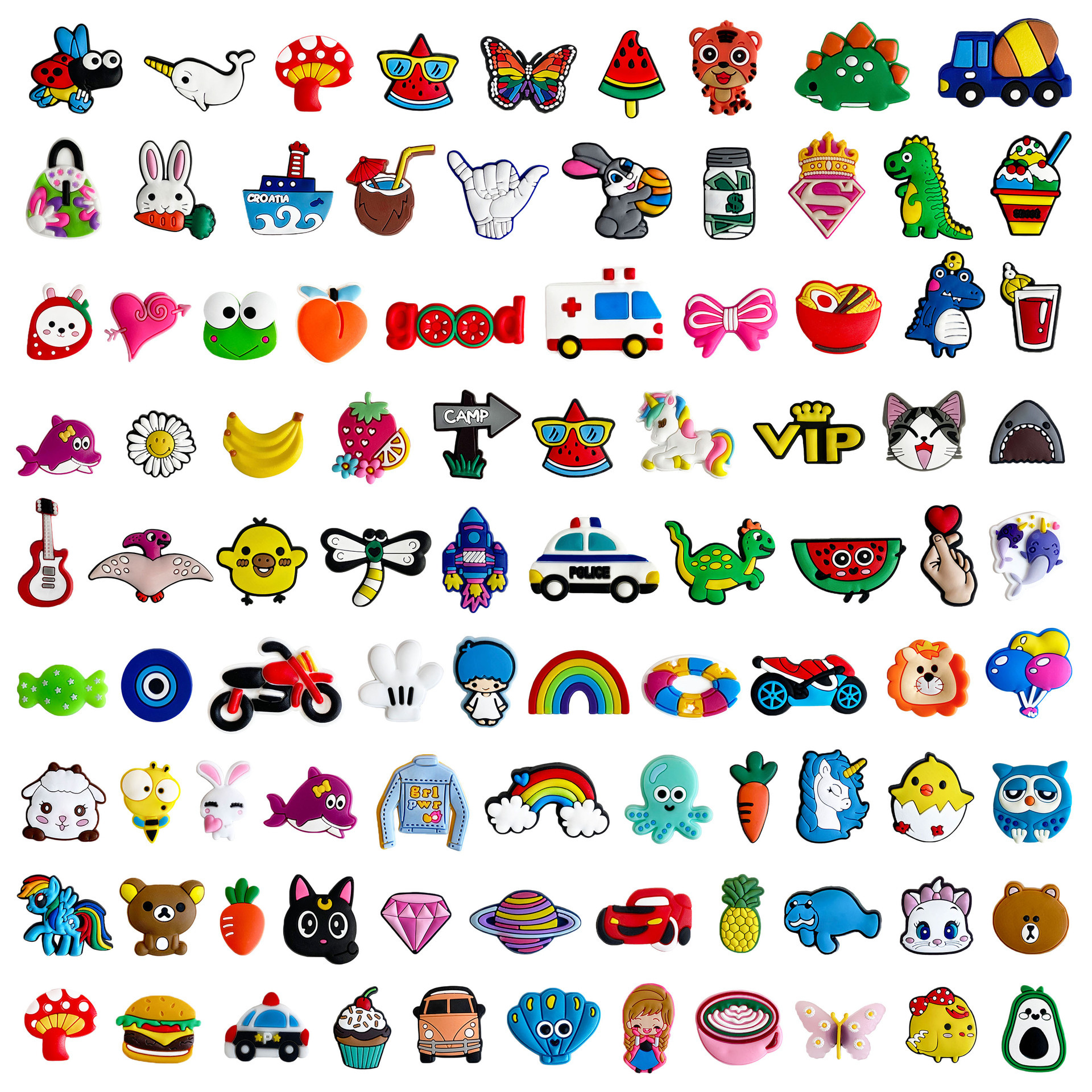 Набор из 100 уникальных, неповторяющихся аксессуаров для Crocs: мягкие резиновые подвески из ПВХ и шнурки для обуви.
