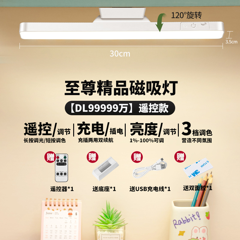 Крутая лампа Светодиодная настольная лампа для защиты глаз студенческий общежитие Рабочий стол кабинет спальня чтение USB пульт дистанционного управления Магнитный всасывающий настенный светильник