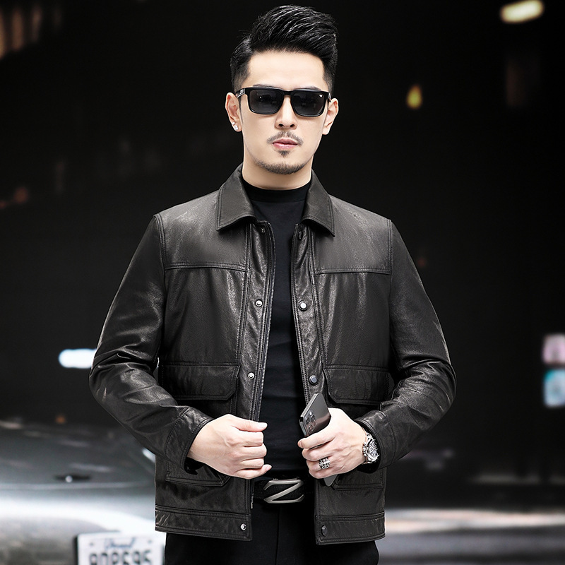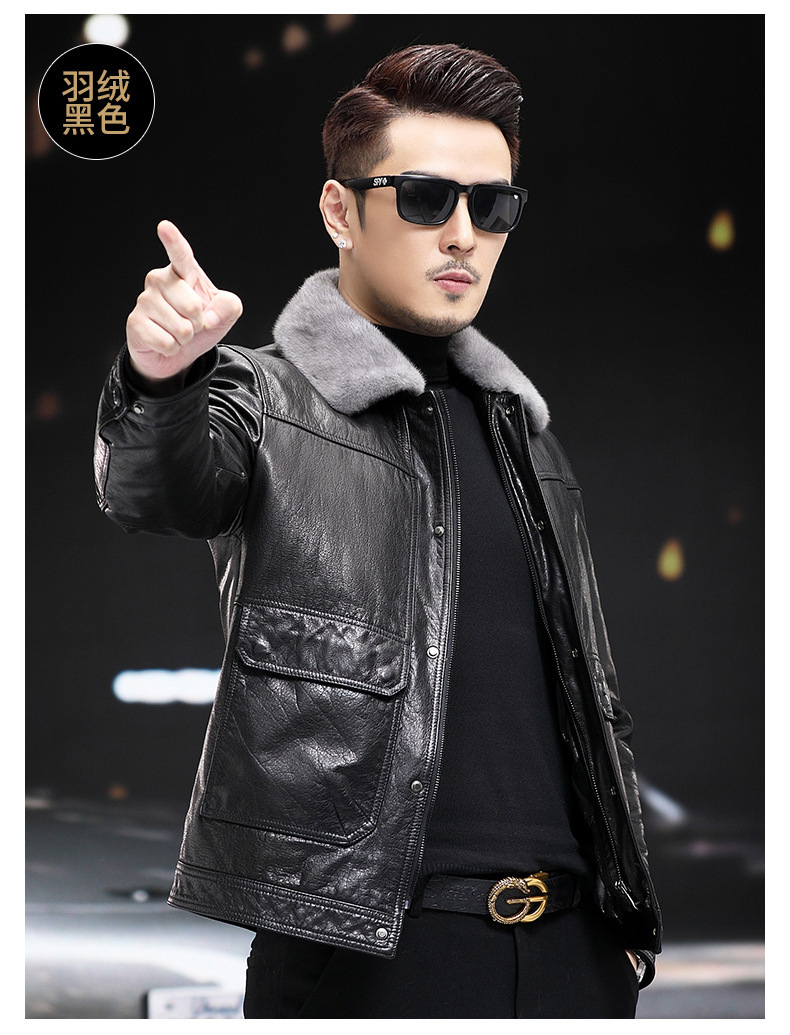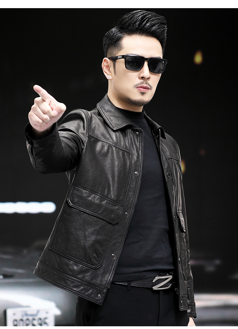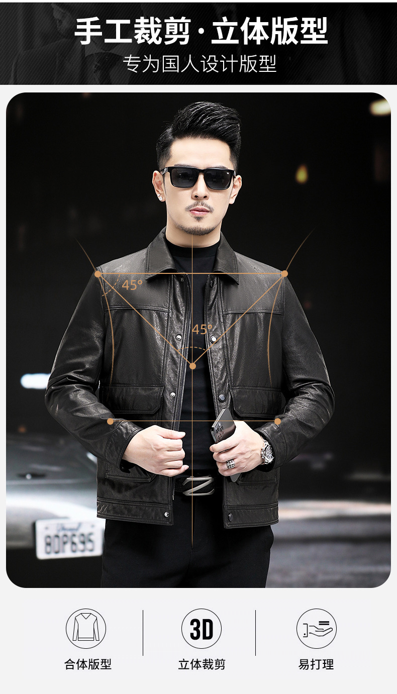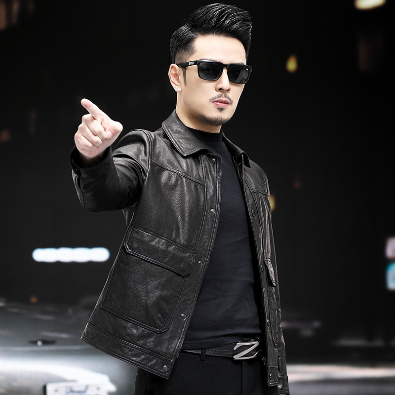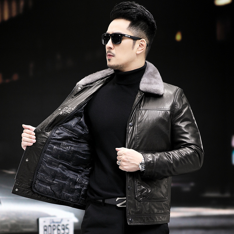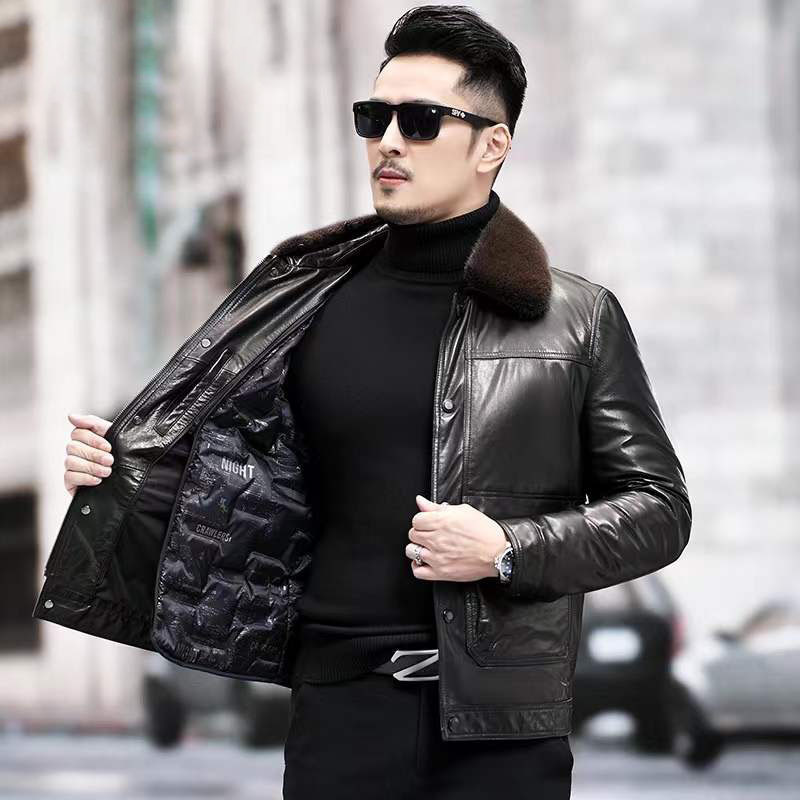 Haining Фабрика новая кожаная кожаная одежда мужская голова слой воловьей кожи воск короткая тонкая пуховая кожаная куртка