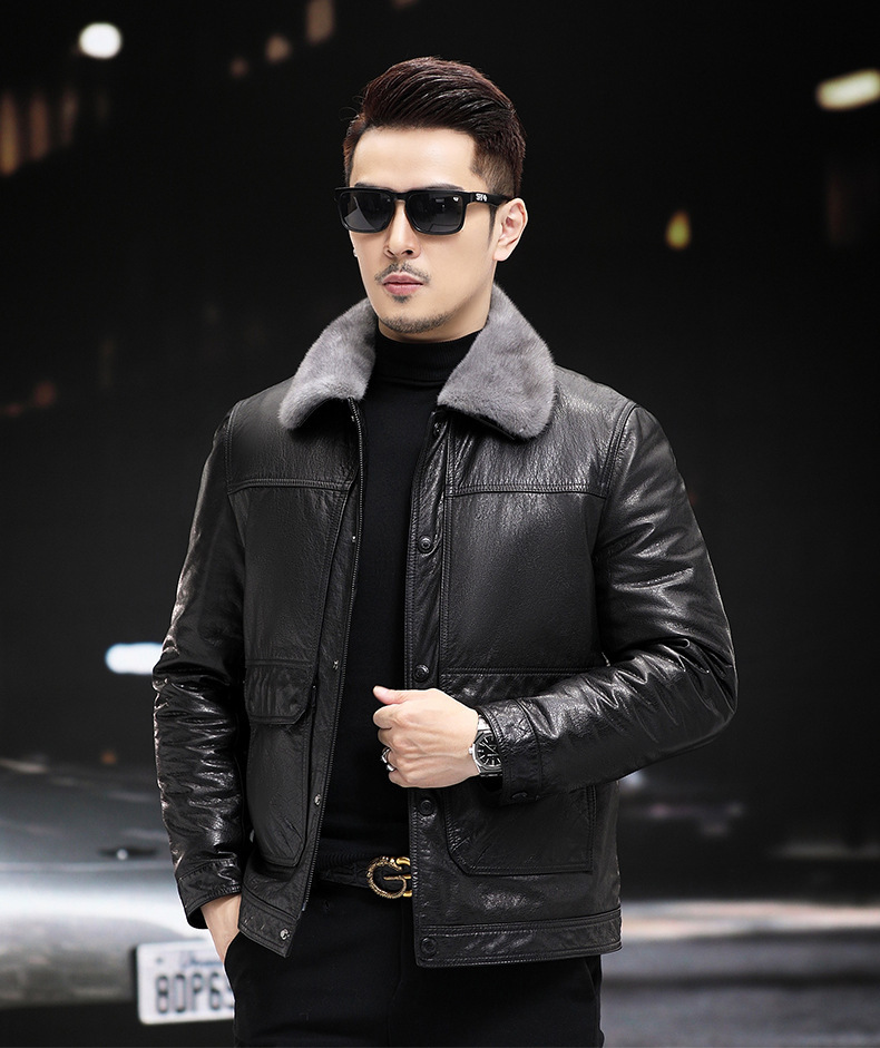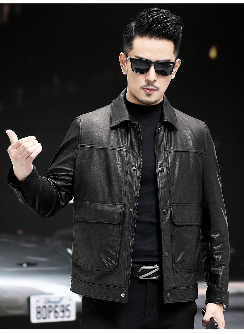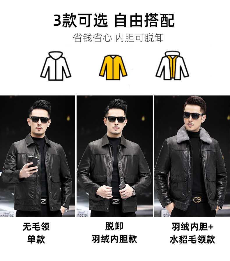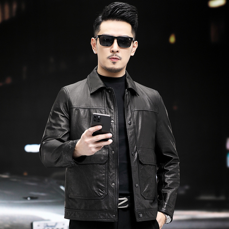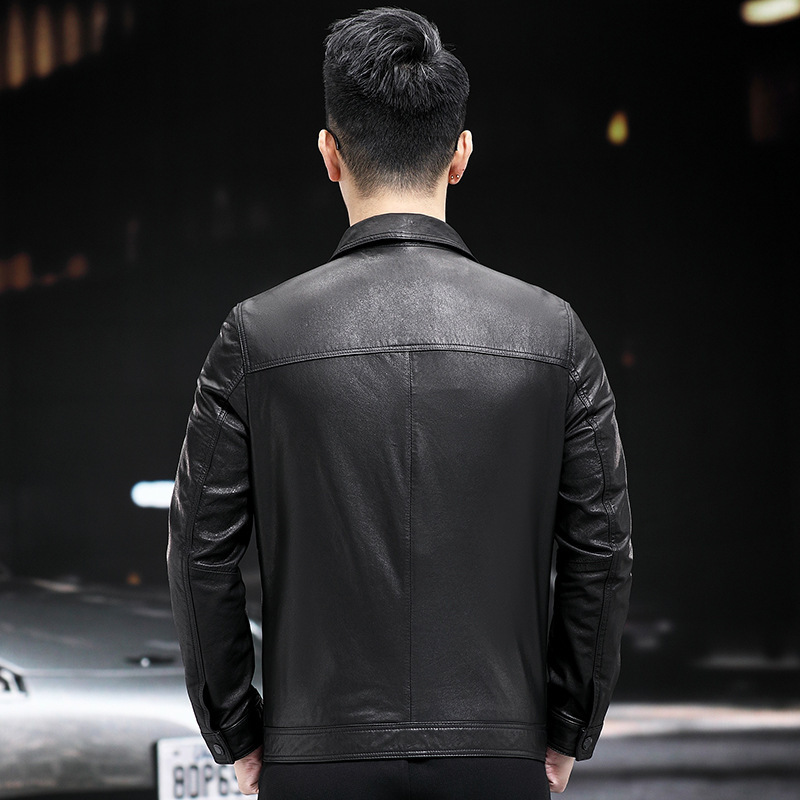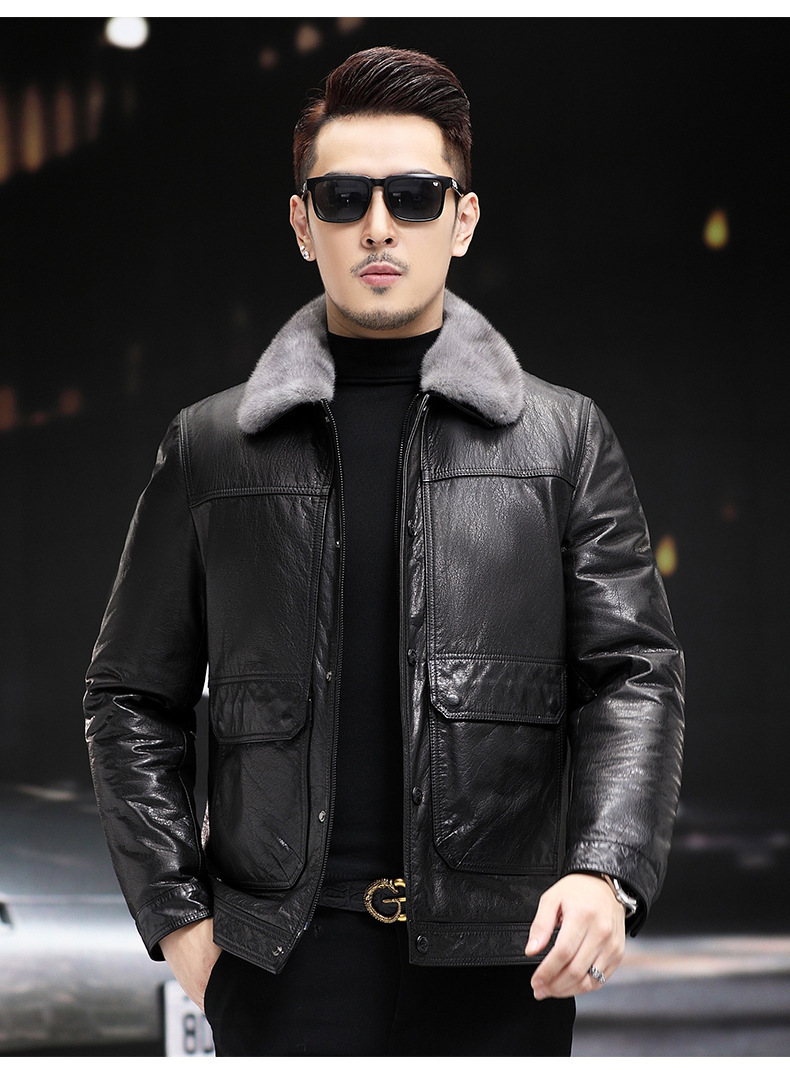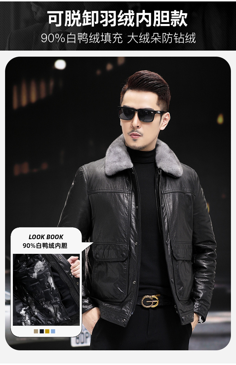 Haining Фабрика новая кожаная кожаная одежда мужская голова слой воловьей кожи воск короткая тонкая пуховая кожаная куртка
