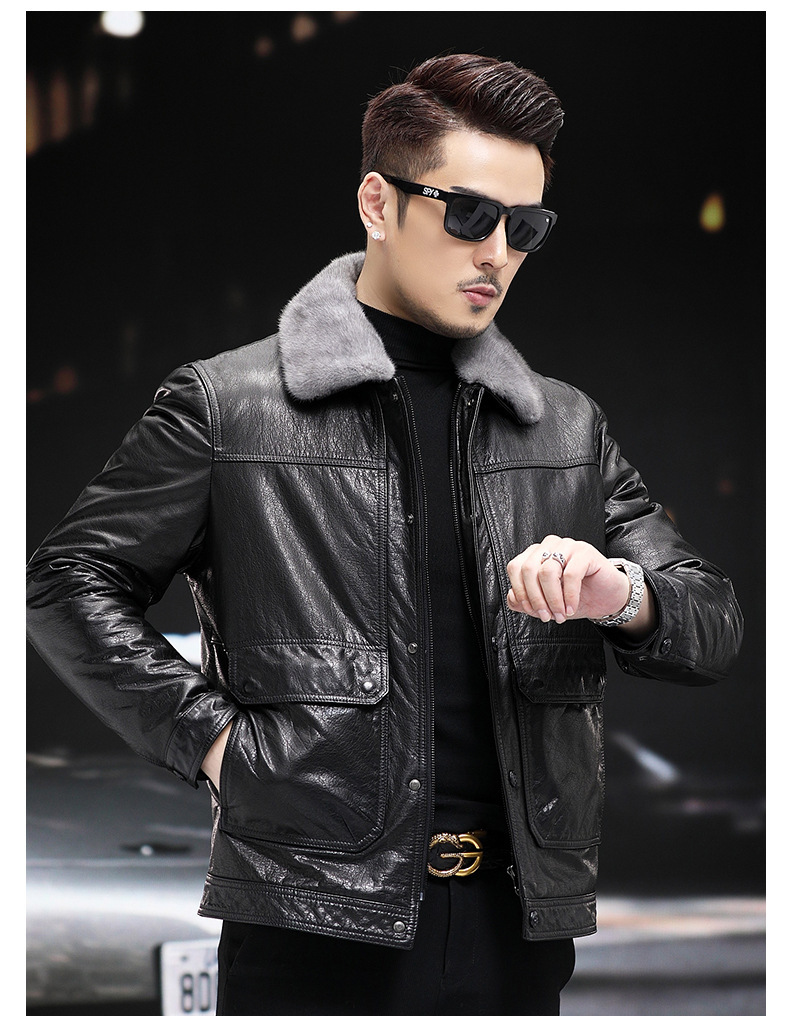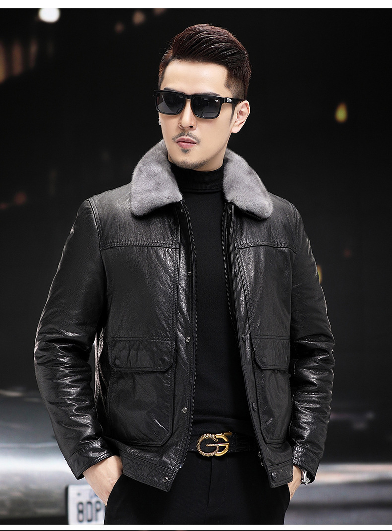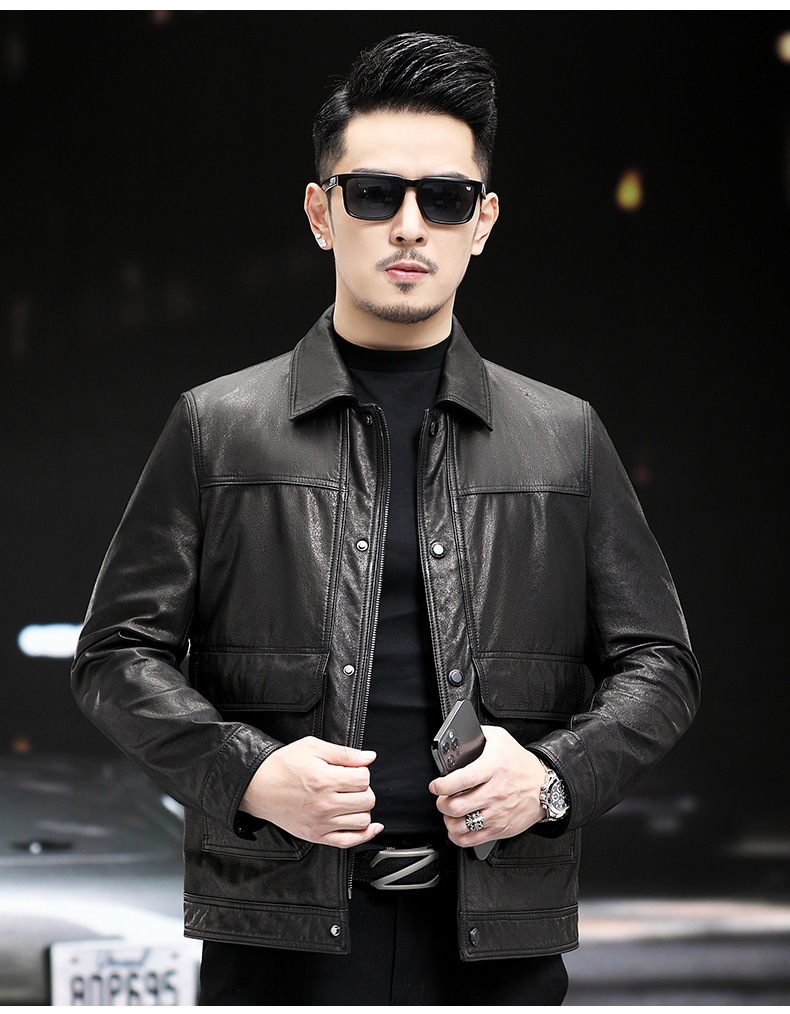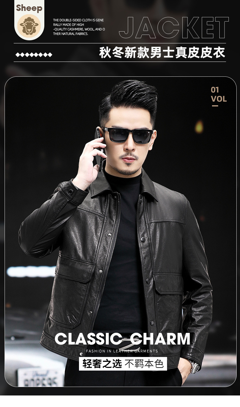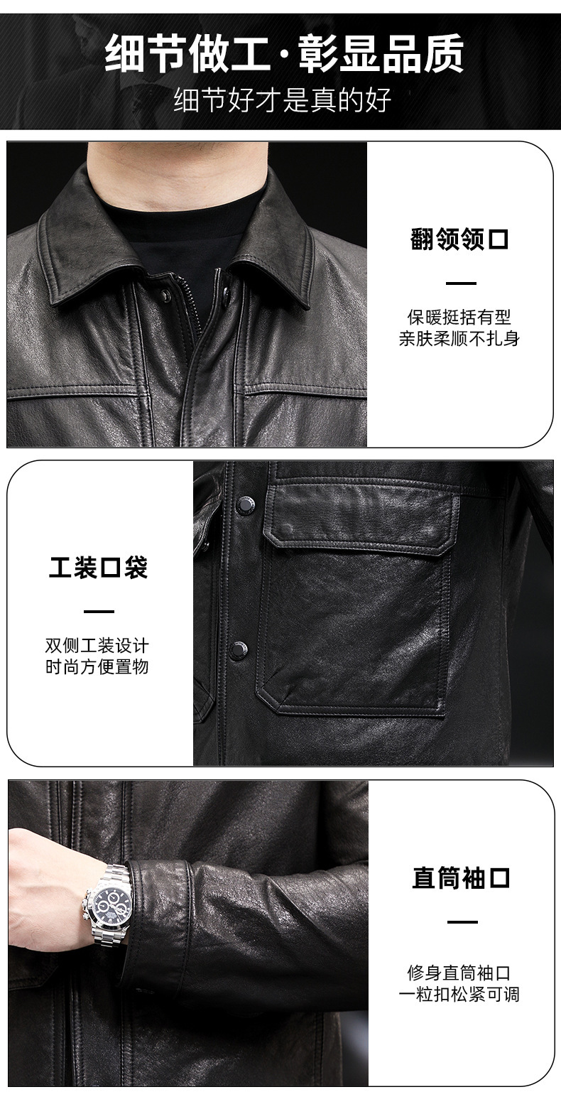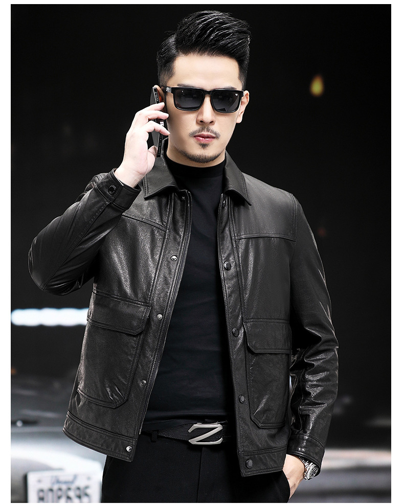 Haining Фабрика новая кожаная кожаная одежда мужская голова слой воловьей кожи воск короткая тонкая пуховая кожаная куртка