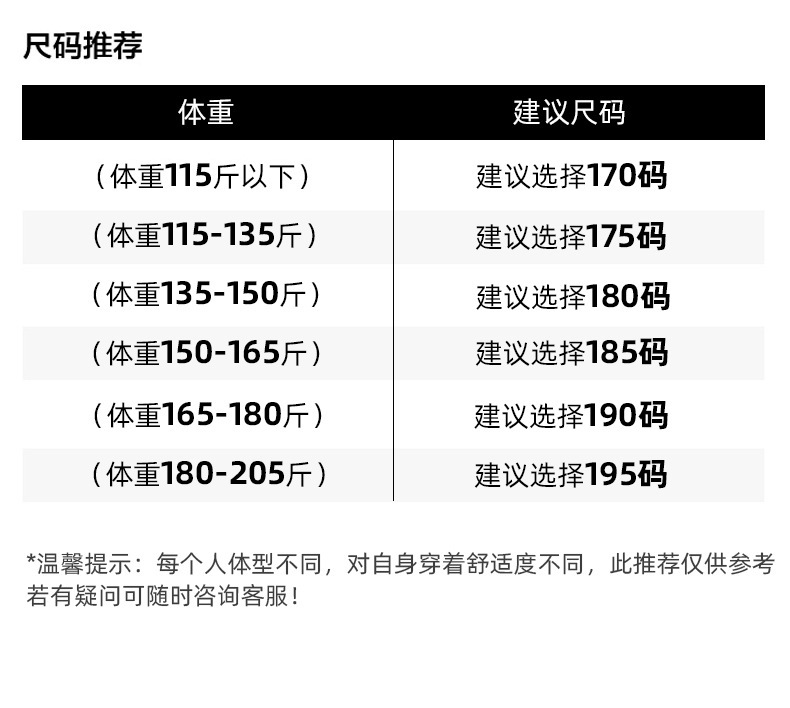 M; 170L; 175/XL; 180/2XL; 185/3XL; 190/4XL; 195/5XL; 6XL