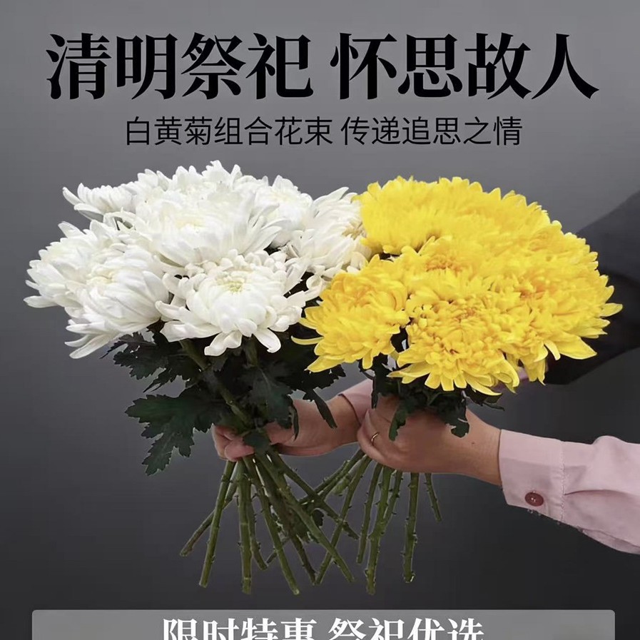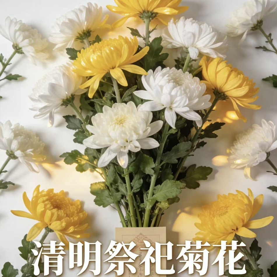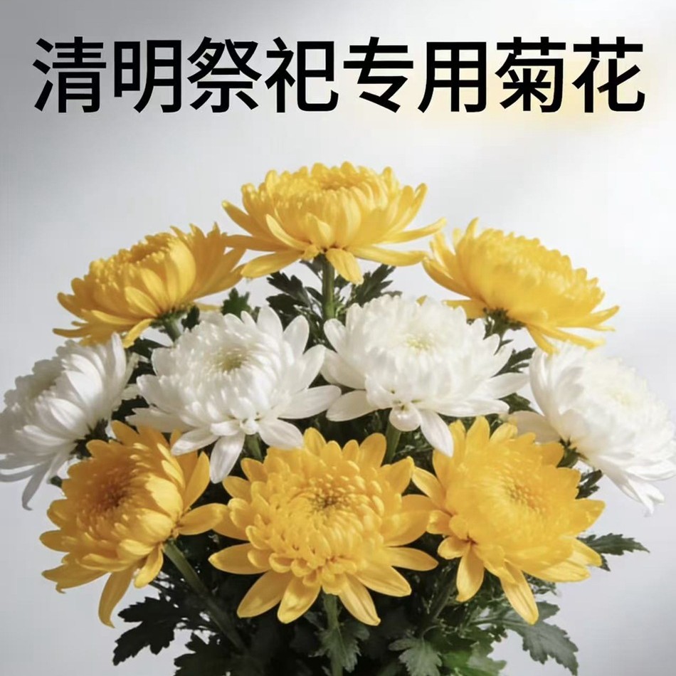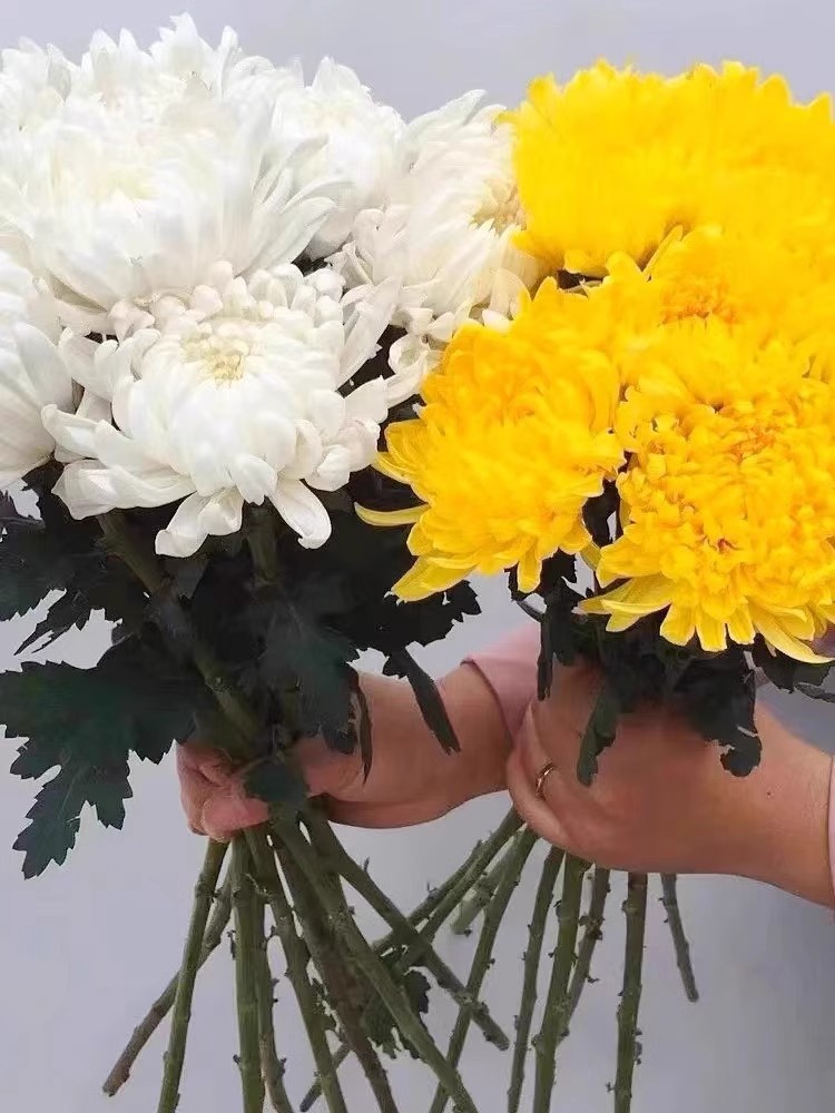 Цветы хризантемы, желтая хризантема, белая хризантема, цветочные букеты для уборки могил и траурных мероприятий фестиваля Цинмин, свежесрезанные цветы, оптовые цветы