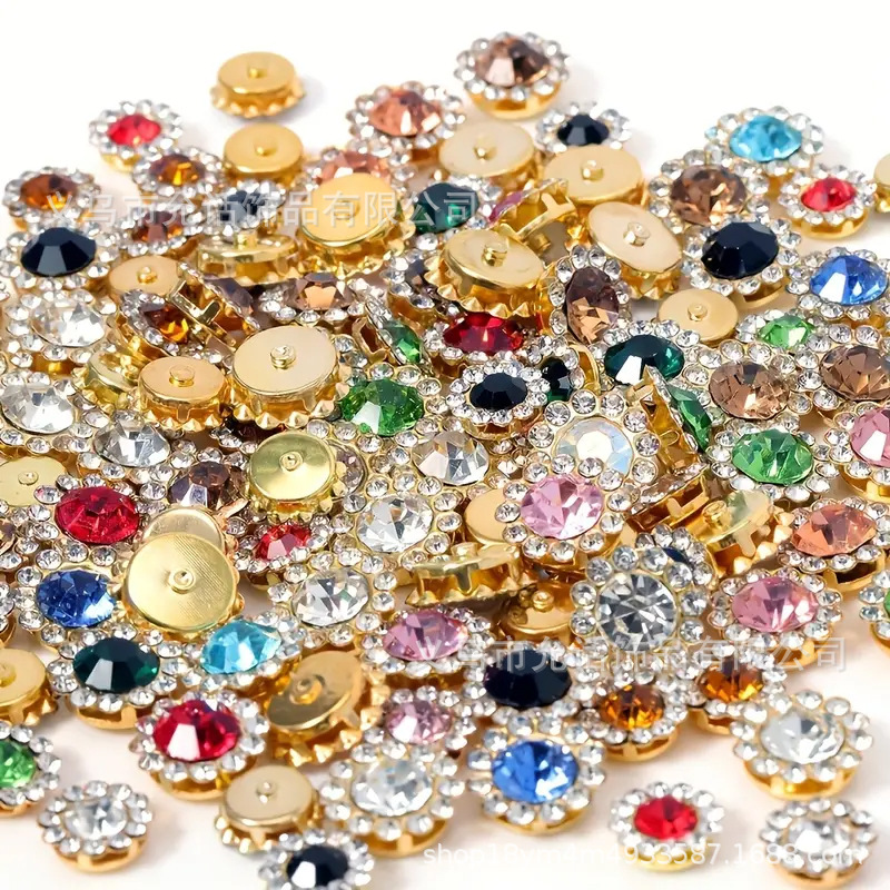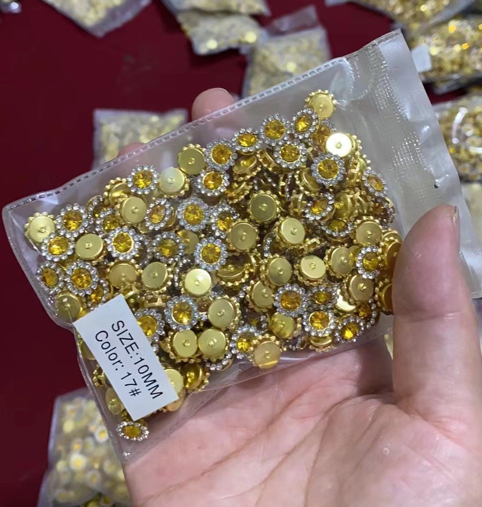 В наличии, быстрая доставка, круглая двуслойная отделка из стразов в виде подсолнуха, стразовая цветочная пластина, стразы, пришитые вручную, материалы для декора одежды своими руками