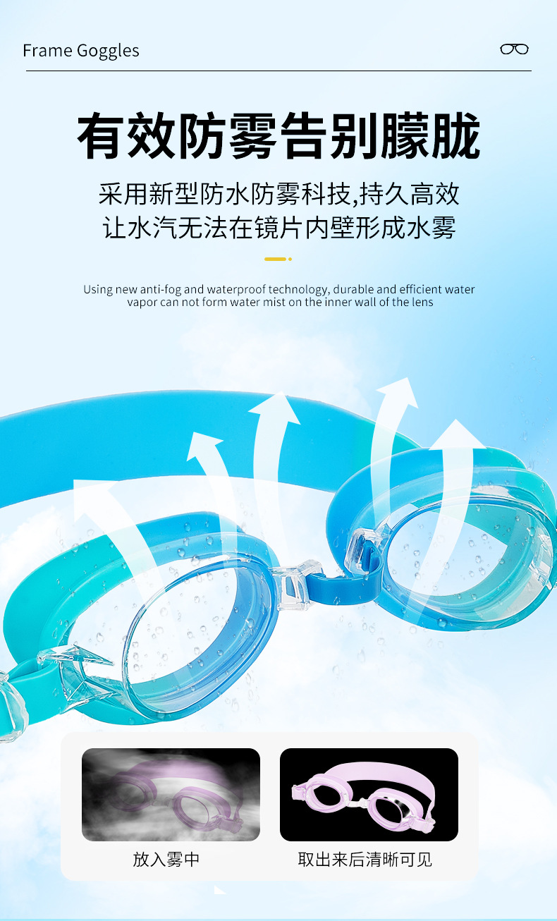 Детские плавательные очки с индивидуальным логотипом, силиконовые, с защитой от запотевания, специально разработанные для детей.