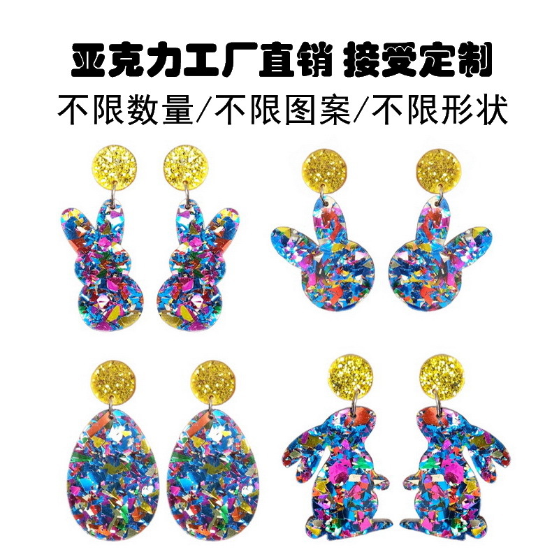 Amazon Пасхальные украшения цвета кролика блестящие акриловые серьги для девочек блестящие радужные серьги