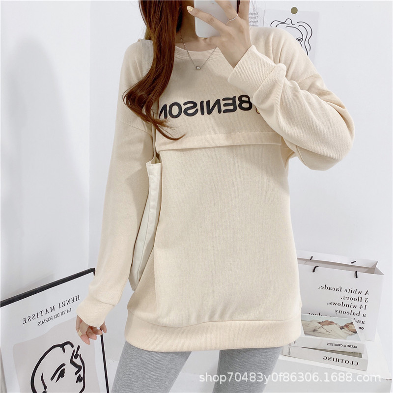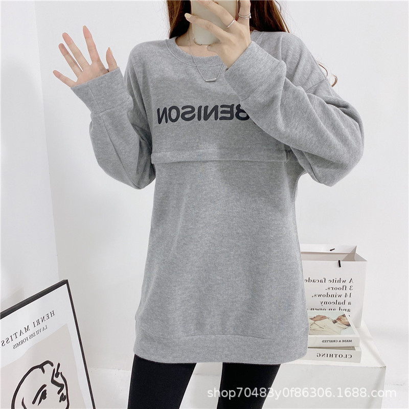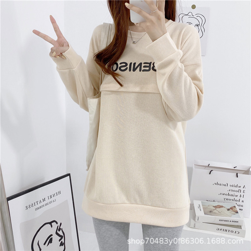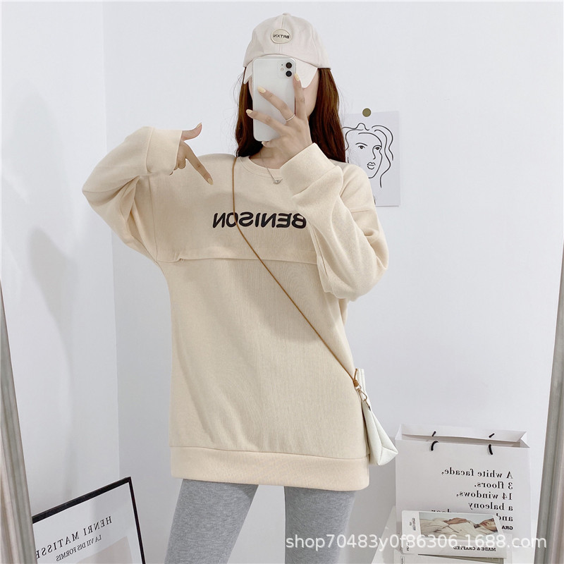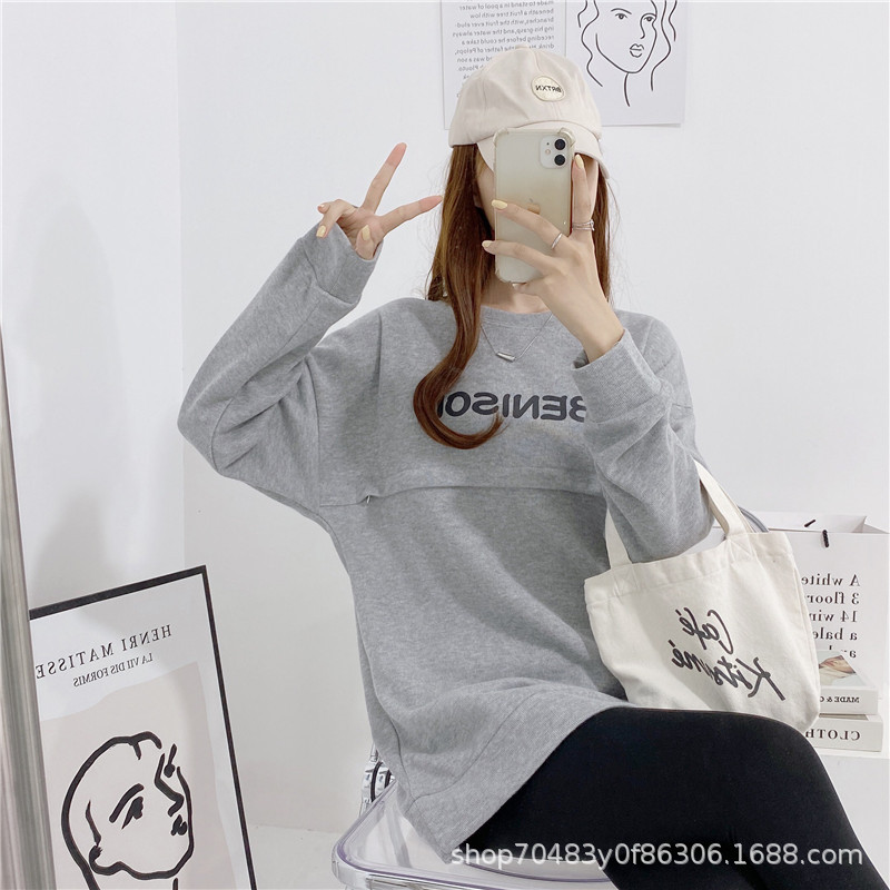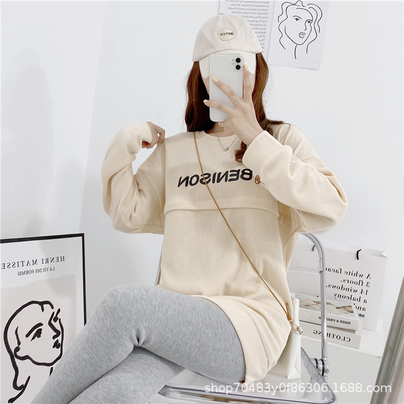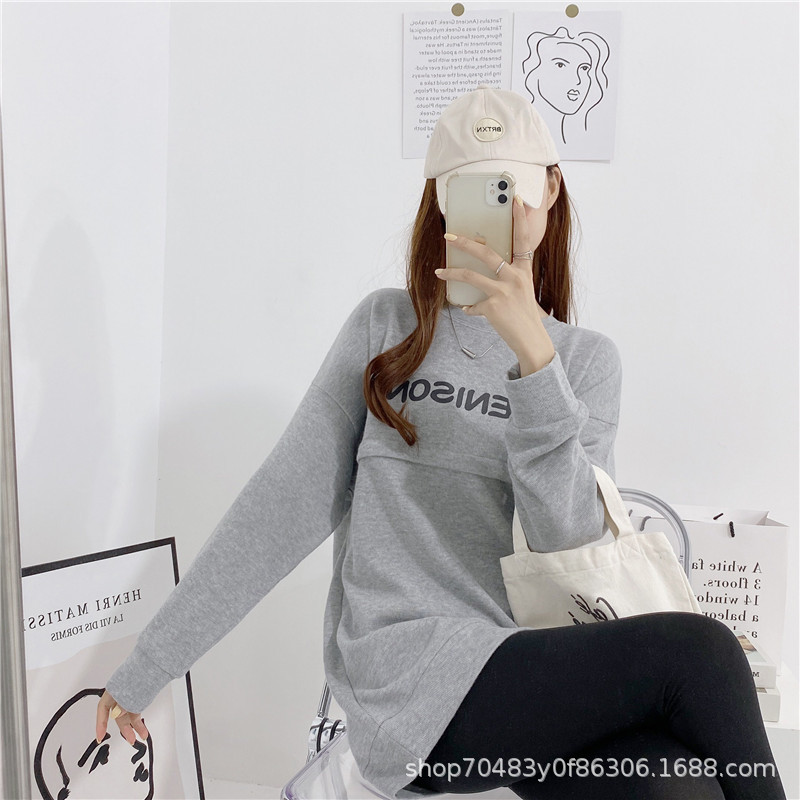 Фото реальной модели: одежда для беременных и кормящих мам с горизонтальной молнией, для весны и осени, подходит для ношения на выход, одежда для грудного вскармливания 9204