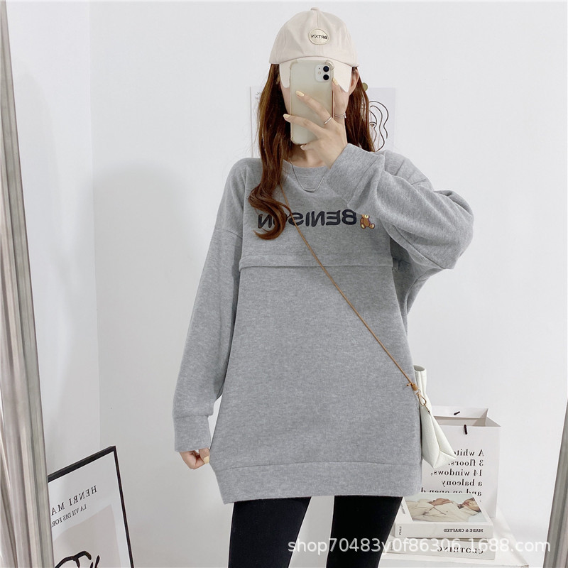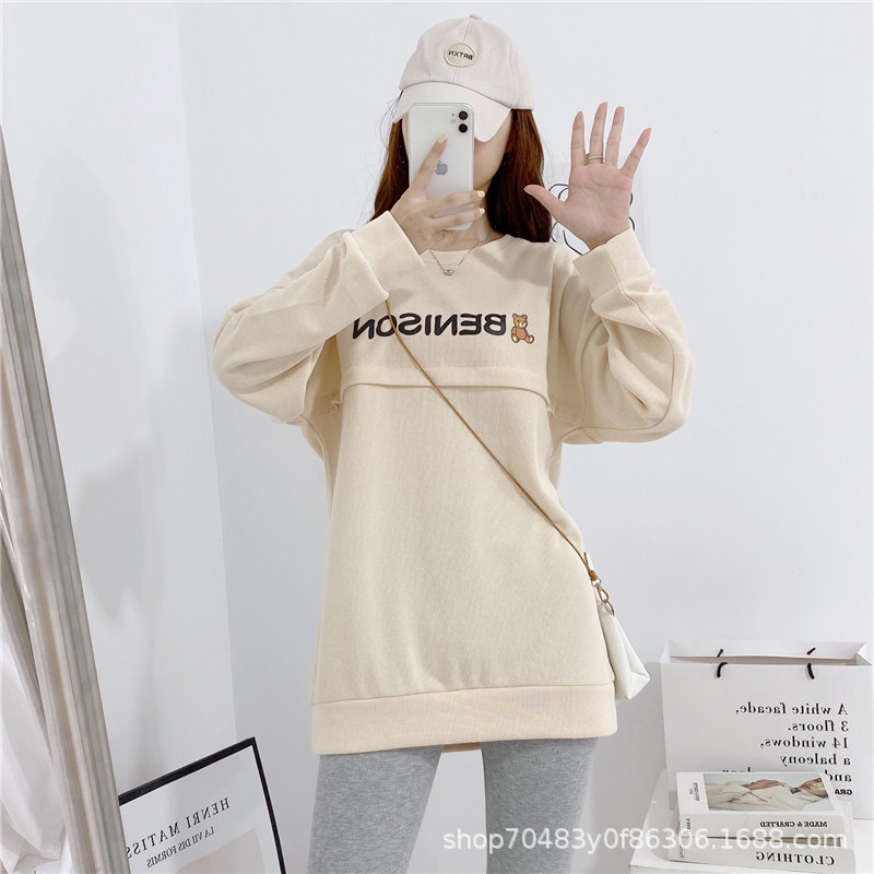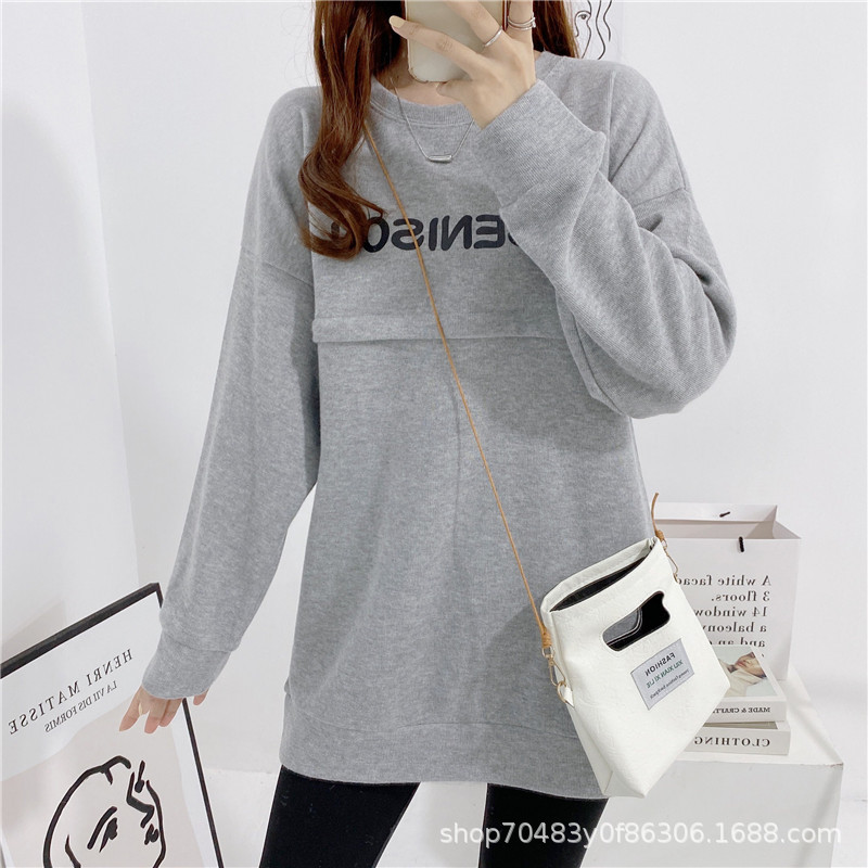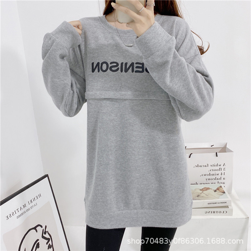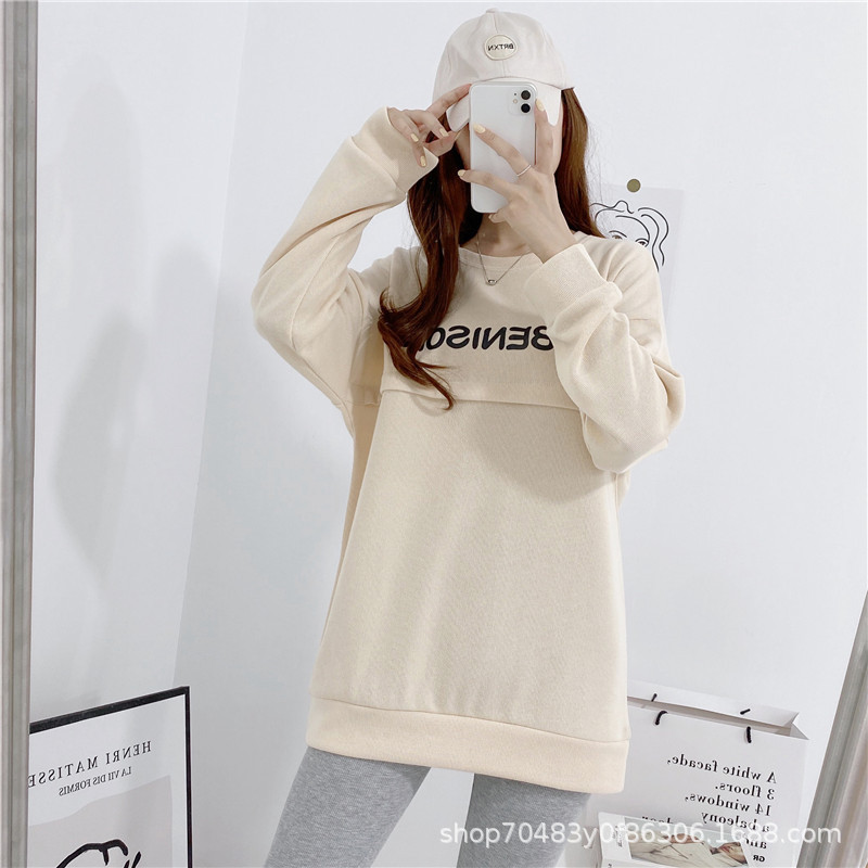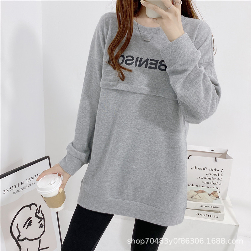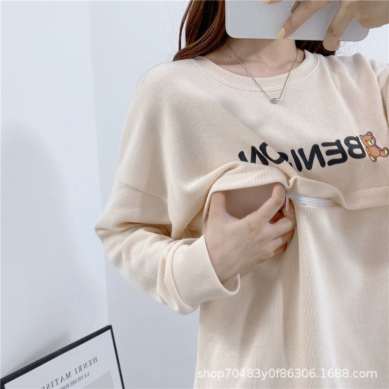 Фото реальной модели: одежда для беременных и кормящих мам с горизонтальной молнией, для весны и осени, подходит для ношения на выход, одежда для грудного вскармливания 9204