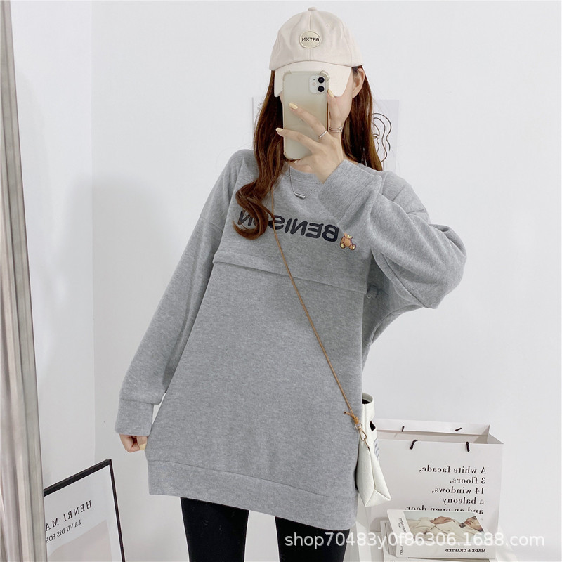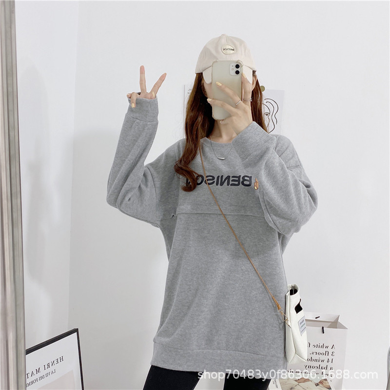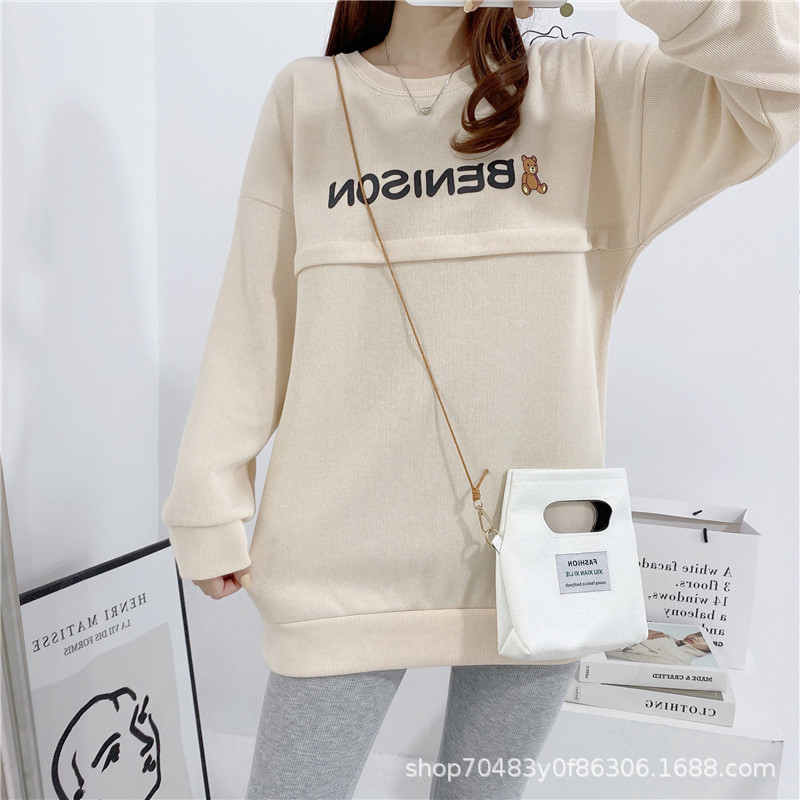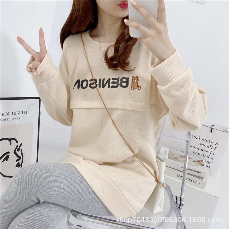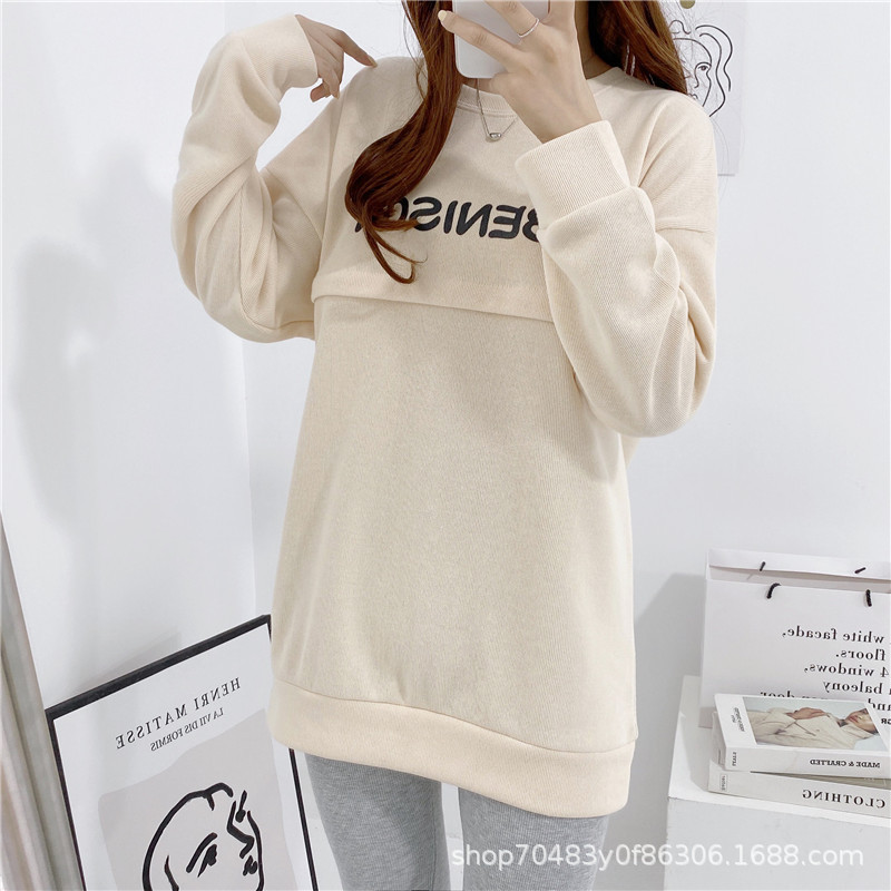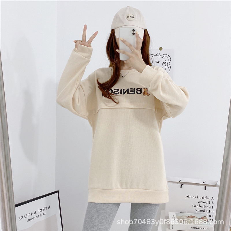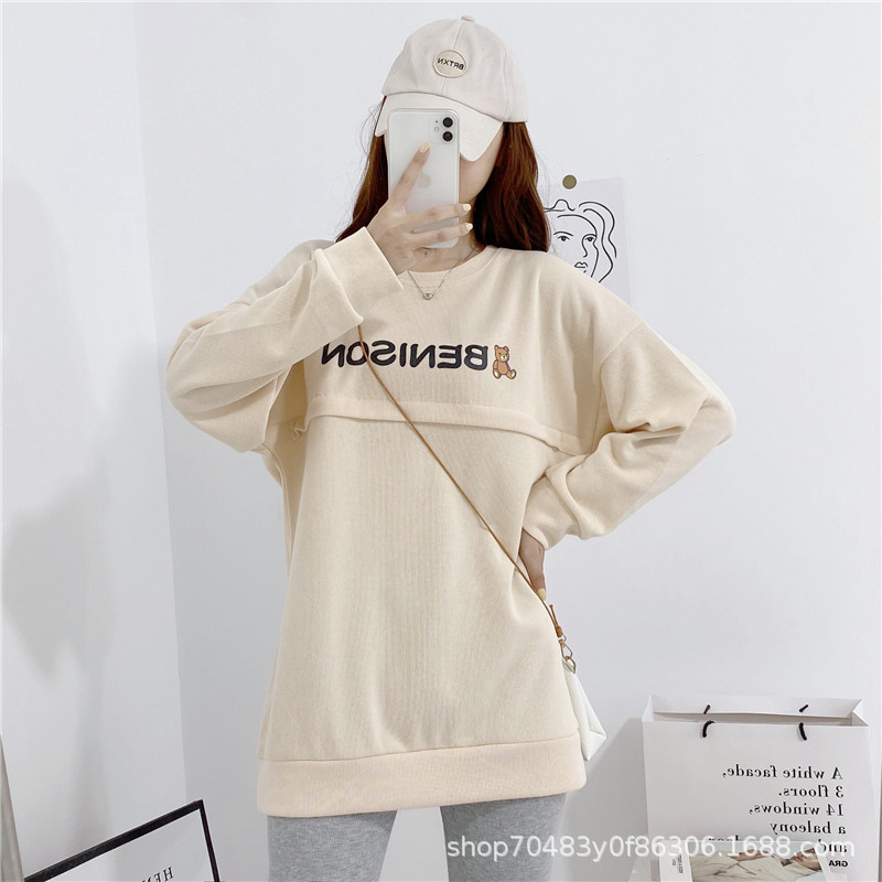 Фото реальной модели: одежда для беременных и кормящих мам с горизонтальной молнией, для весны и осени, подходит для ношения на выход, одежда для грудного вскармливания 9204