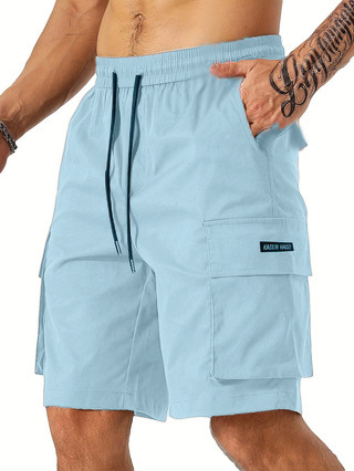 Amazon TEMU независимая станция, трансграничная, 2024, новые мужские шорты для спецодежды с несколькими карманами на талии и шнурке