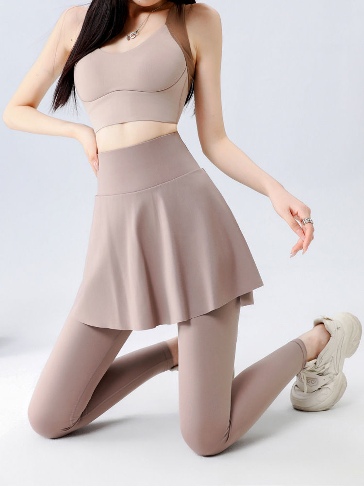 Спортивные брюки-юбка 2-в-1 для женщин, модель 2026: утягивающие, с высокой талией, для йоги, бега и фитнеса, весна-осень, имитация двух частей, верхняя одежда