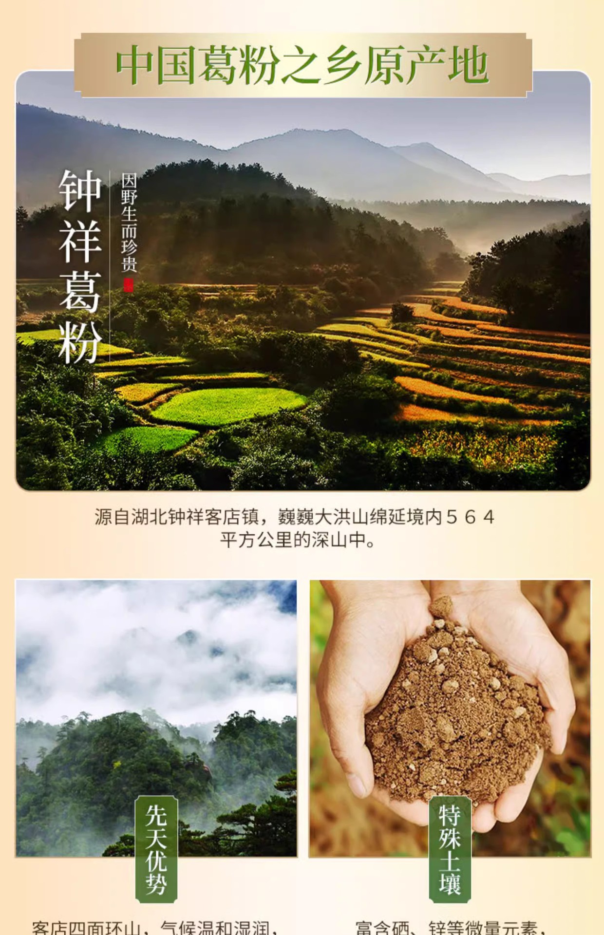 湖北钟祥是著名的葛粉之乡,葛粉是这里的地标产品,葛粉原产地是湖北钟祥。这里祖祖辈辈吃葛粉,所以人特别长寿,因此也被评为长寿之乡!