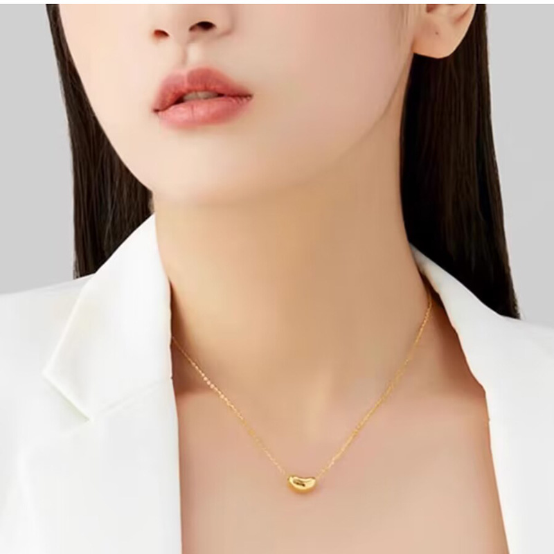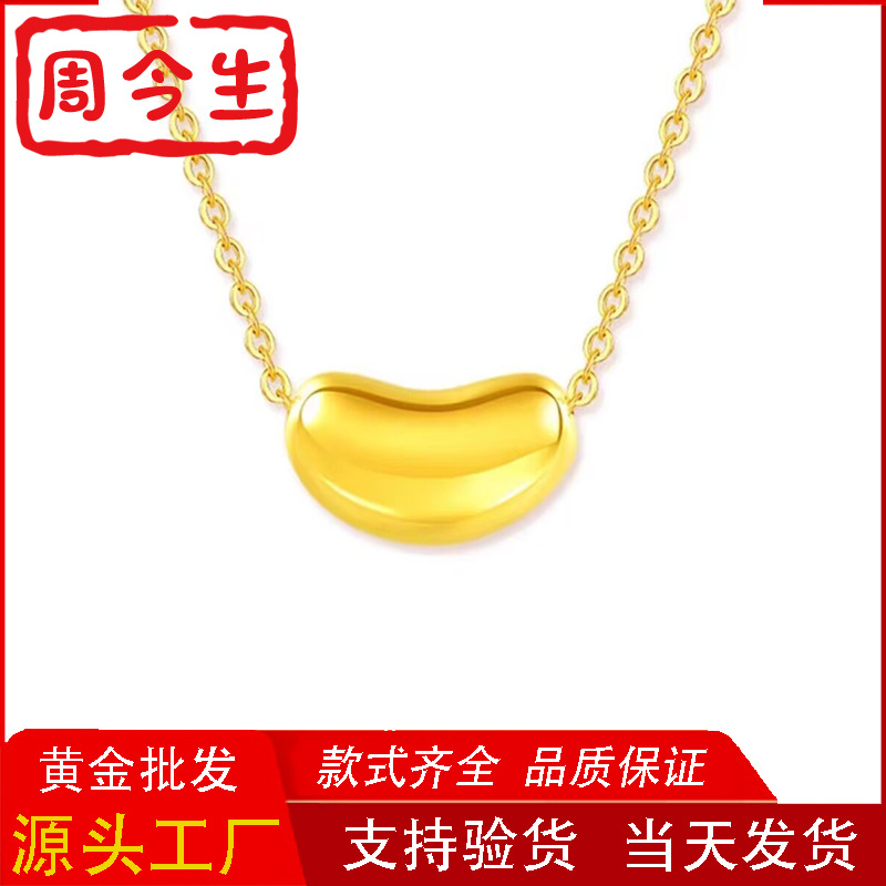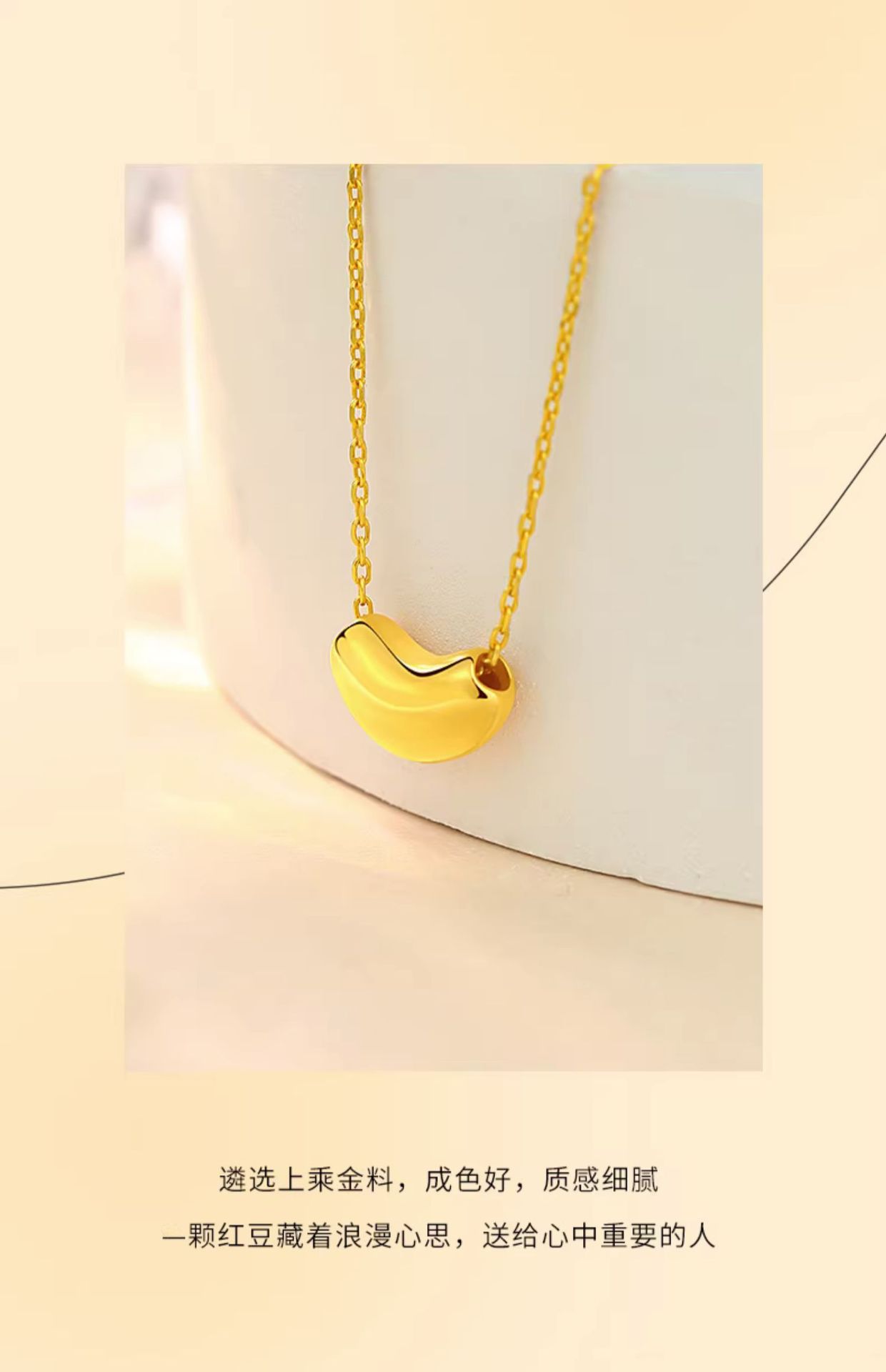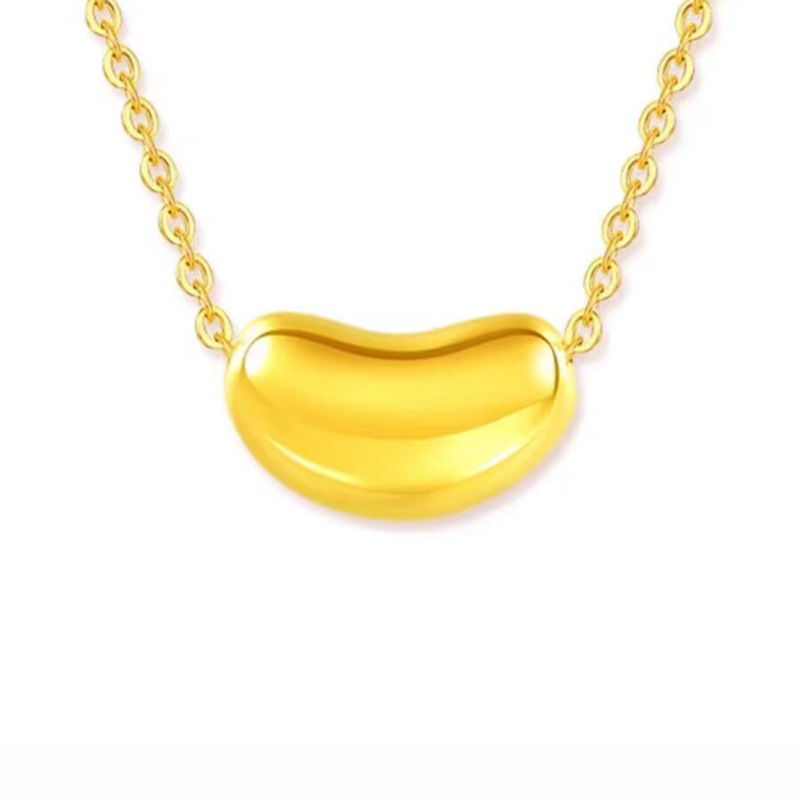24K Золотое ожерелье с подвеской в виде акации, 3D твердое золото 5G, ракушка, чистое золото, красная фасоль, подарок для красоты на День святого Валентина