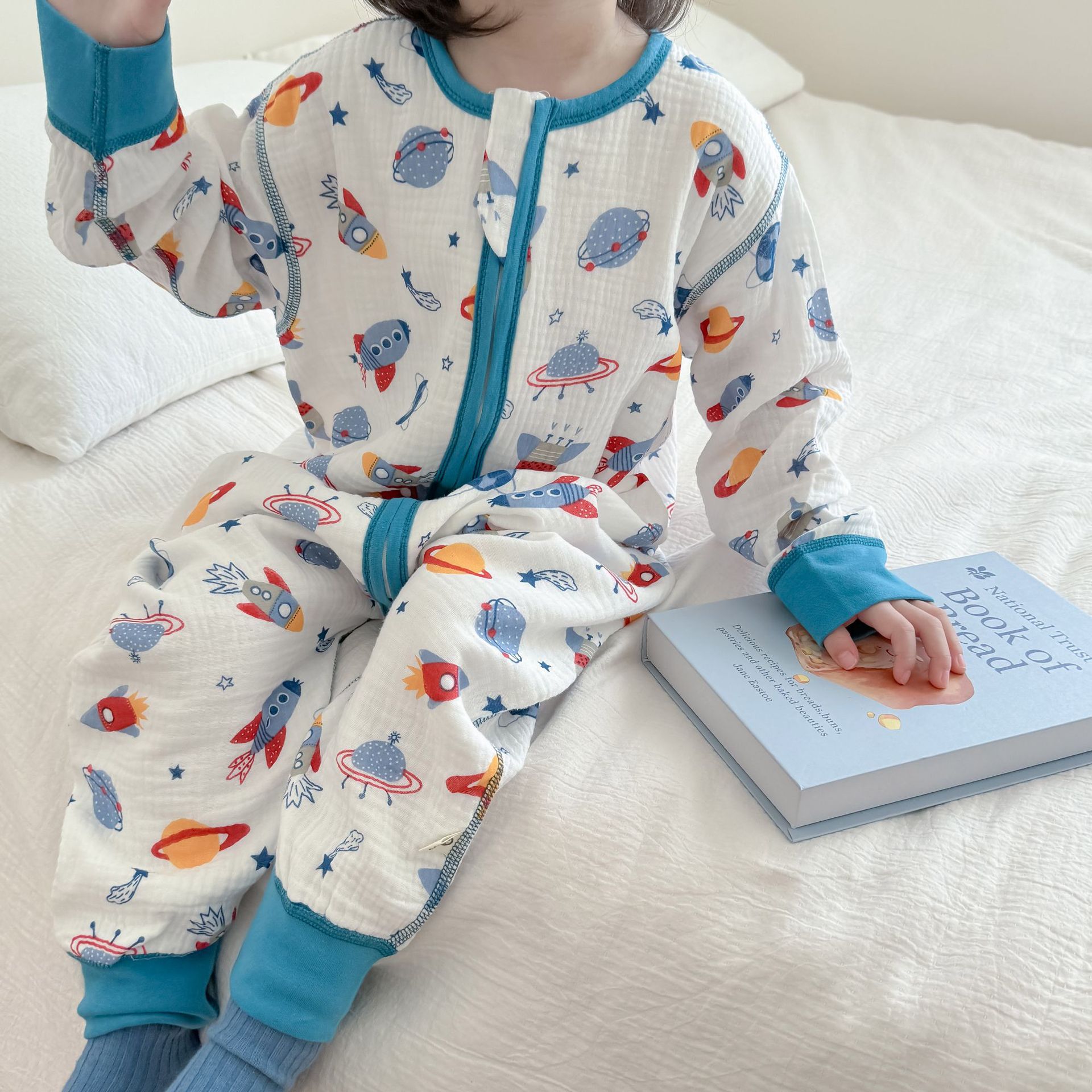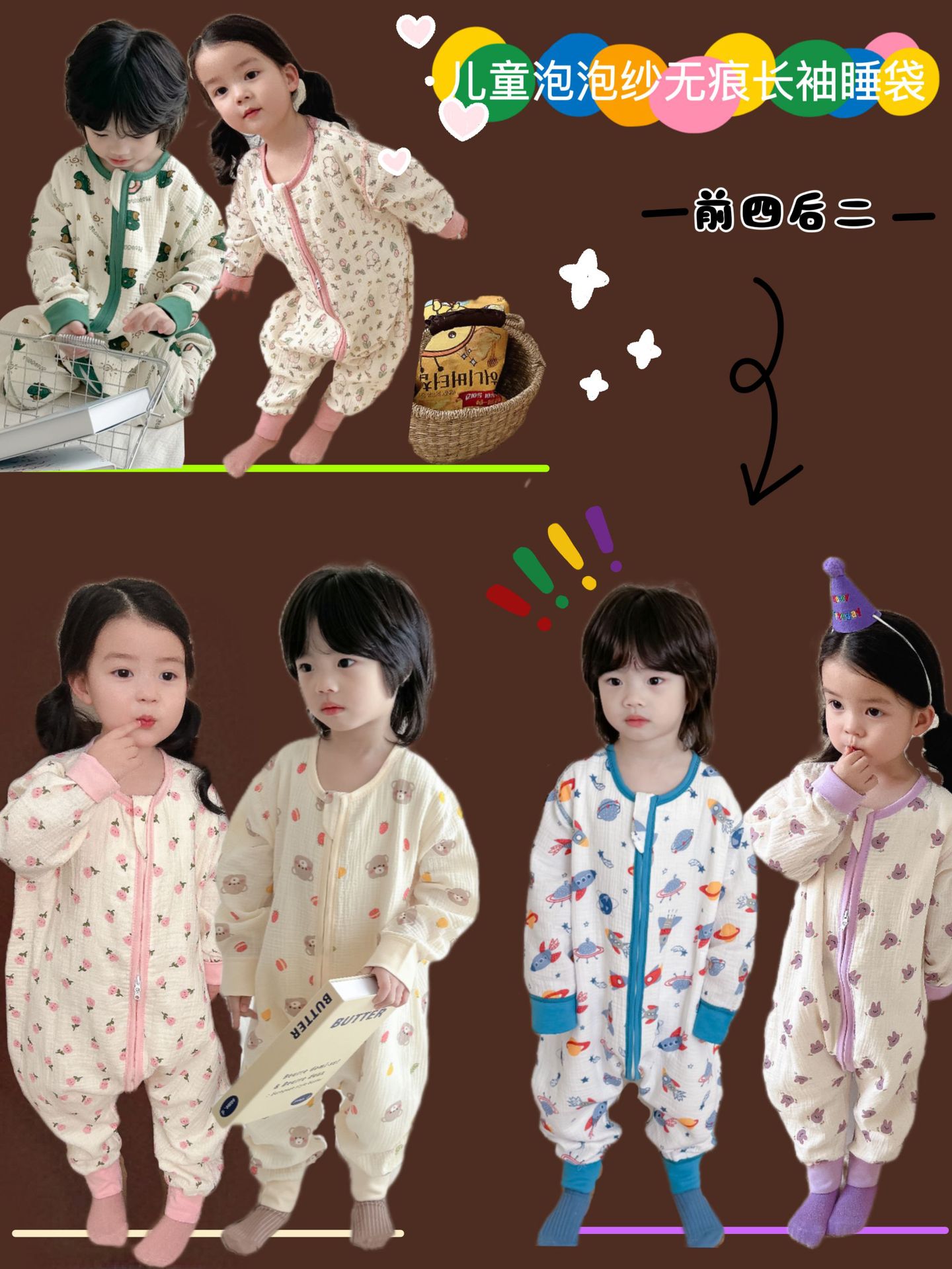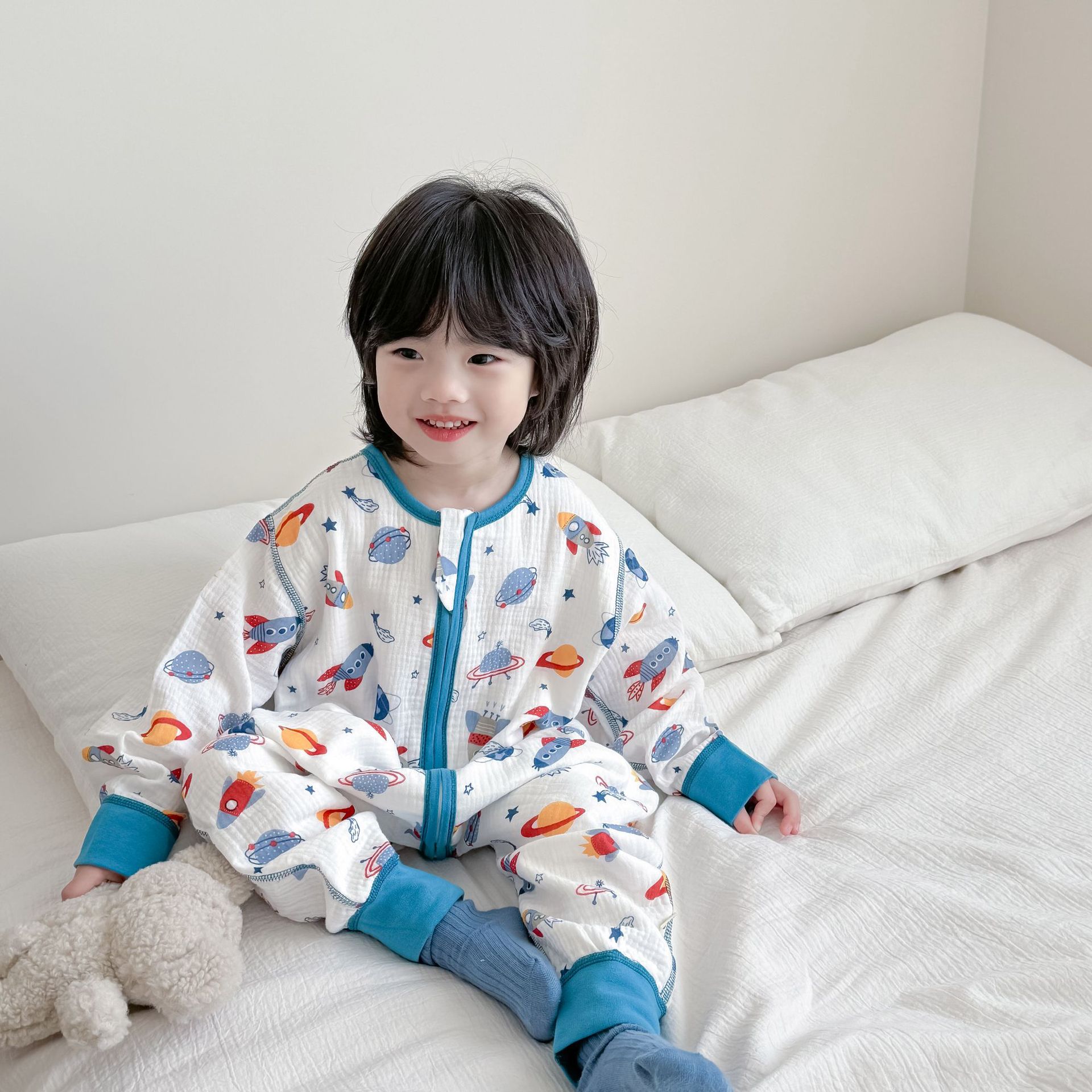 24 Four Seasons Детский Мужской и Женский Детский комбинезон с длинным рукавом, марлевый спальный мешок, комбинезон, комбинезон спереди, 4 сзади, 2 мужские и женские