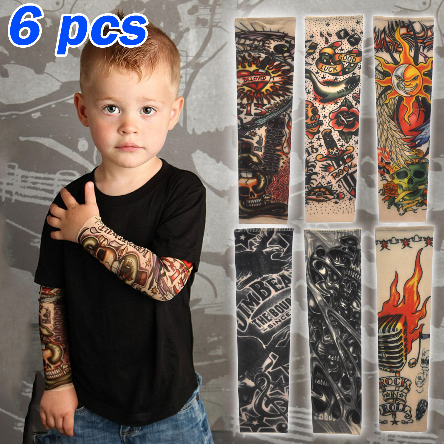Комбинированные Детские нарукавные рукава для защиты от солнца, 6 предметов, летняя Горячая Распродажа, соответствующие Детские нарукавные рукава с татуировкой, сшитая сотовая сетка
