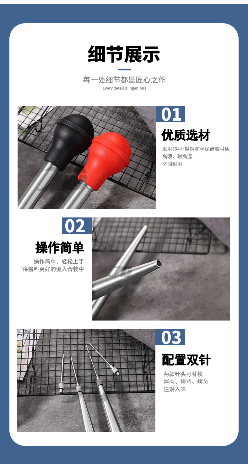 Амазонка приправа шприца индюка игла силиконовая индейка насос 304 из нержавеющей стали двойной иглы головная уборка набор