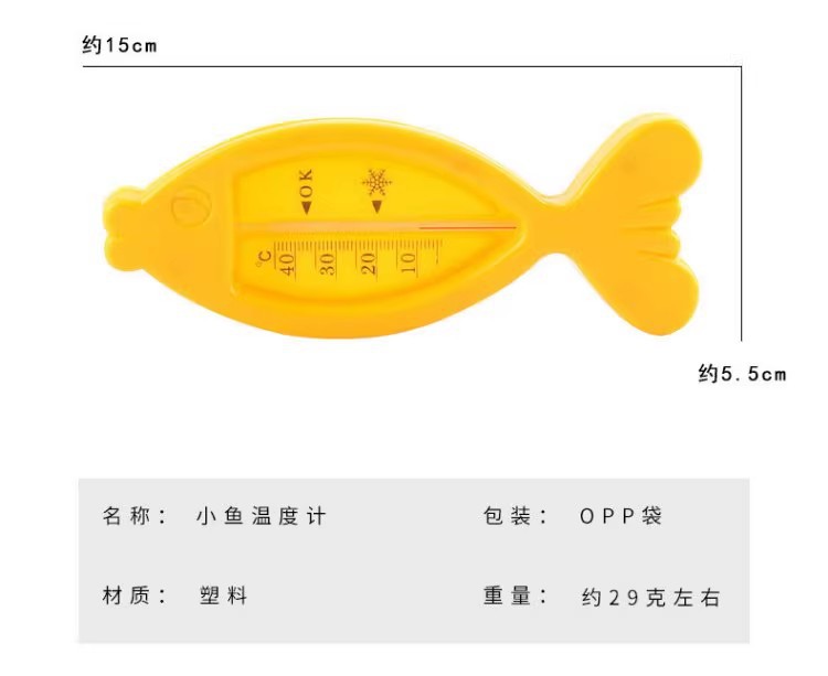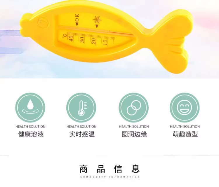 特点:小鱼形状的水温计设计新颖,外观逼真,可激发宝宝的好奇心,让宝宝在洗浴中享受玩耍的乐趣。