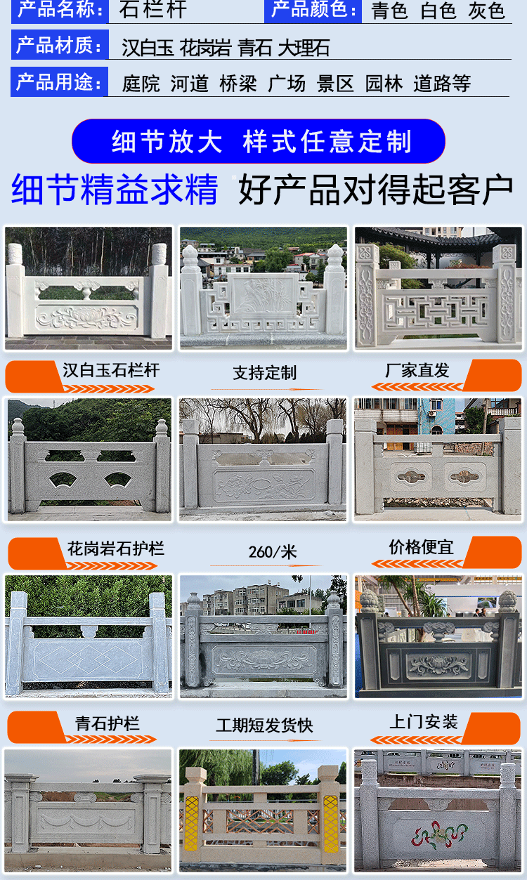 Производитель гранитных перил, каменных ограждений для мостов, белых мраморных панелей для заборов, каменных перил в китайском стиле с резьбой.
