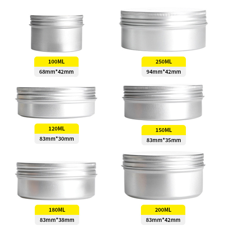 Хит продаж: оптовая партия алюминиевых баночек для крема для рук, свечей и косметики, пищевого класса, объемом 5-250 мл.
