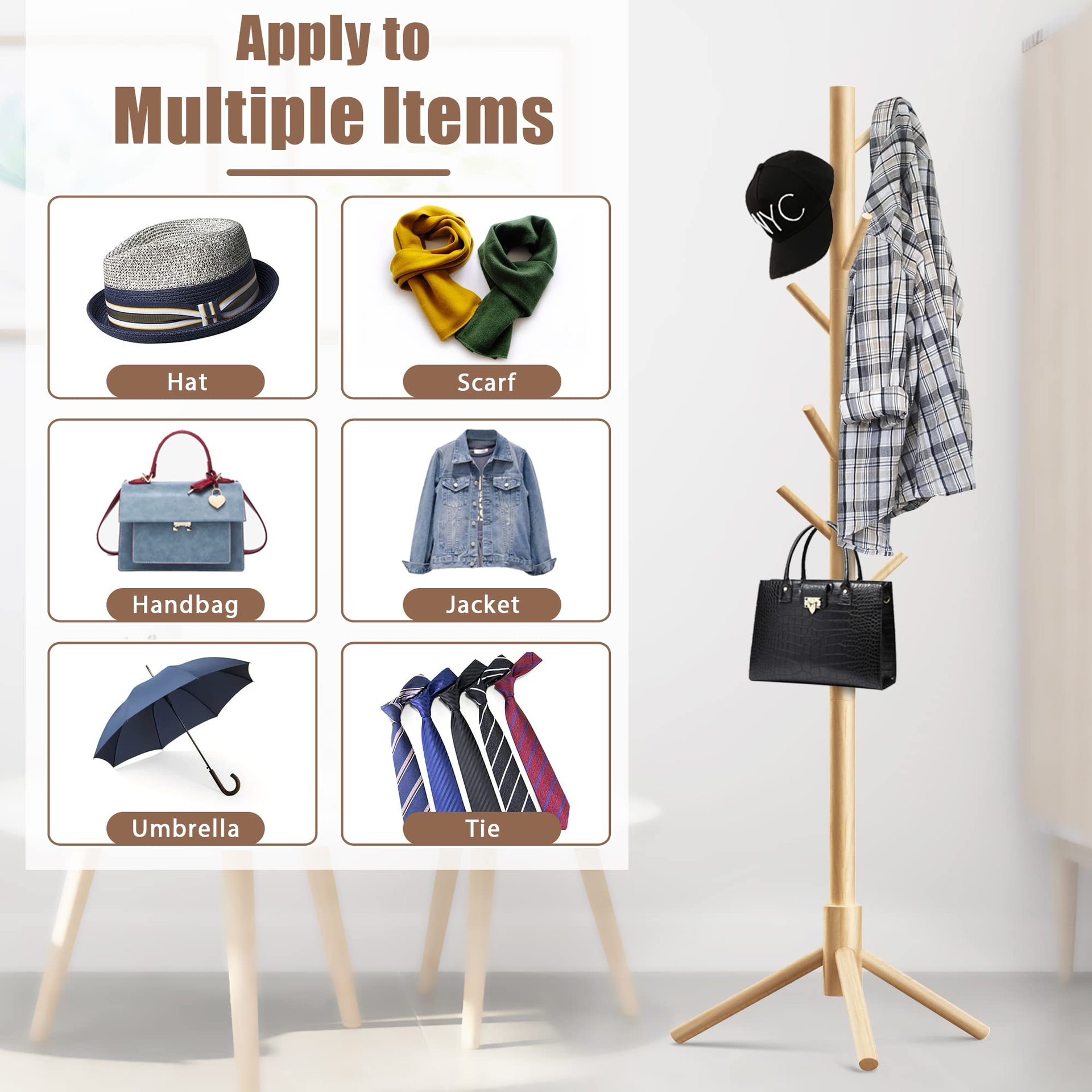 Вешалка из цельного дерева напольная вешалка для одежды маленькая вешалка для сумок Простая вешалка для хранения в спальне Домашняя одежда маленькая вешалка для одежды
