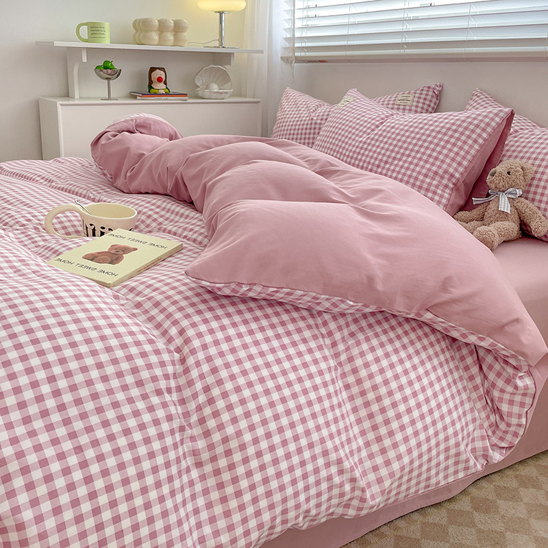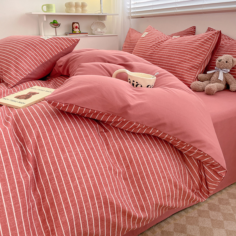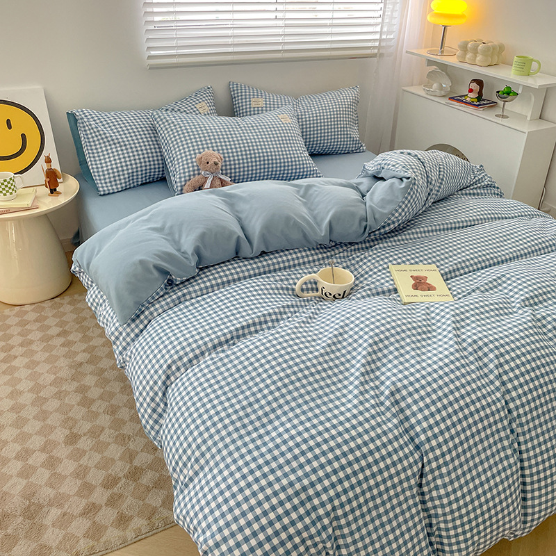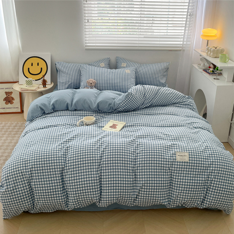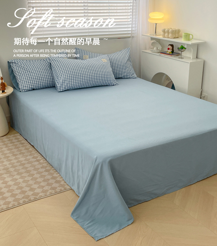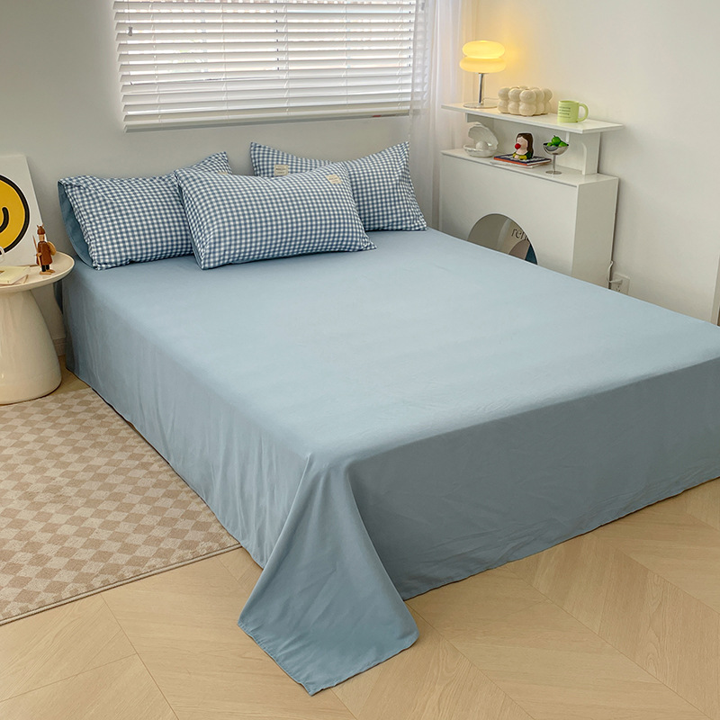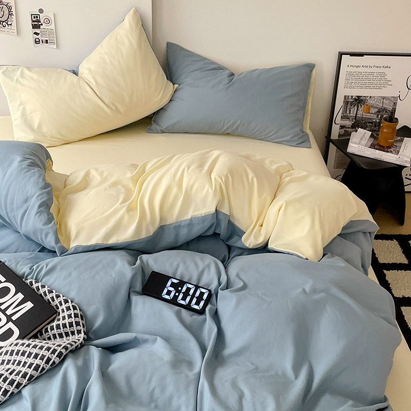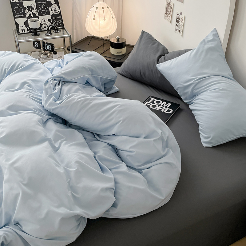 Комплект из четырех предметов из чистого цвета хлопка, японский простой промытый хлопок в стиле ins, Студенческая Простыня из трех предметов, хлопковая одинарная пододеяльник