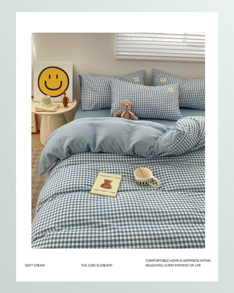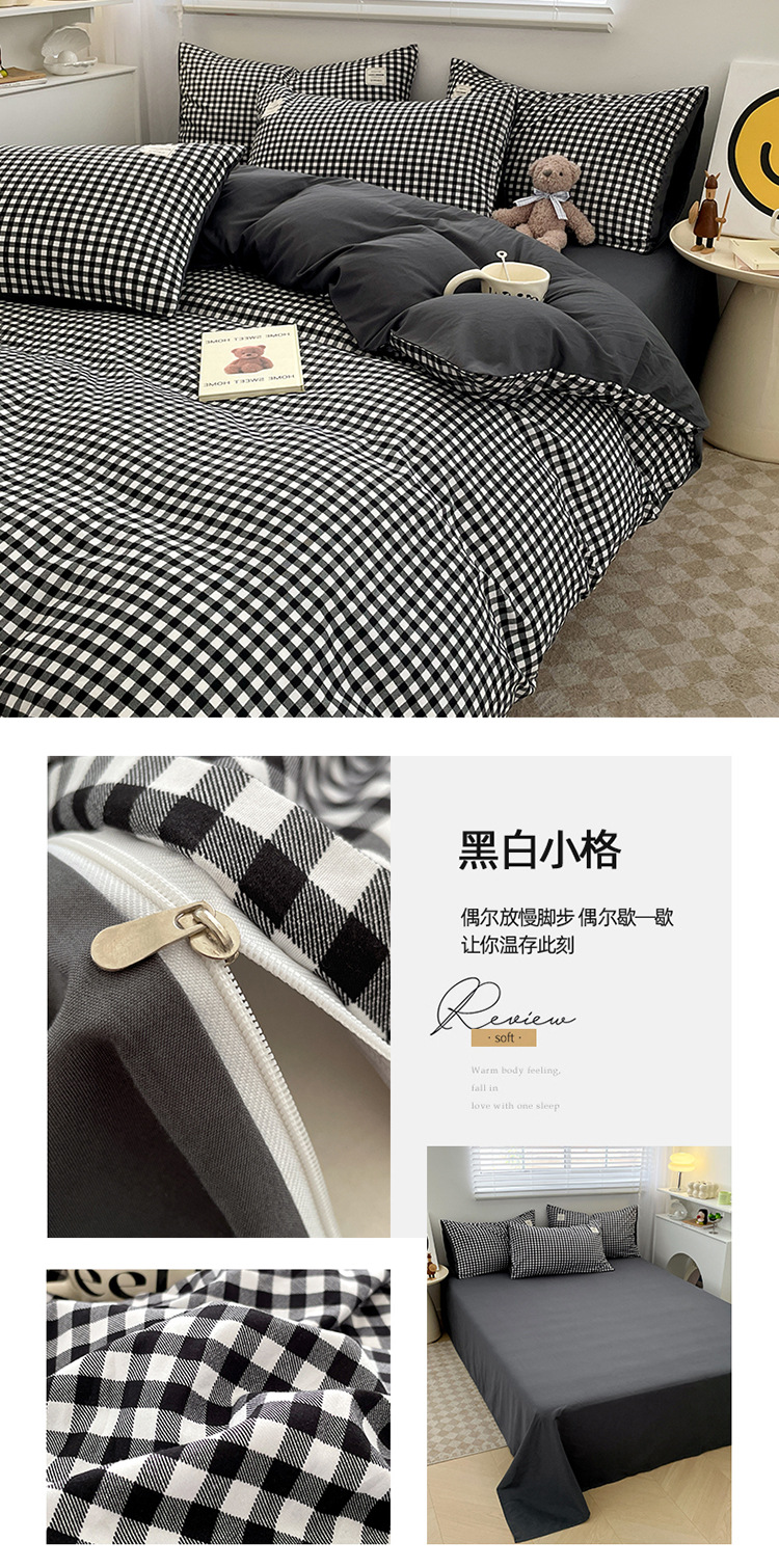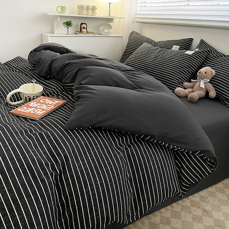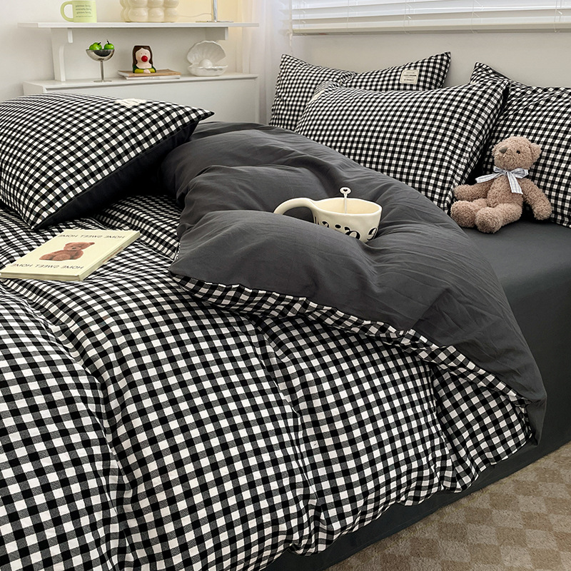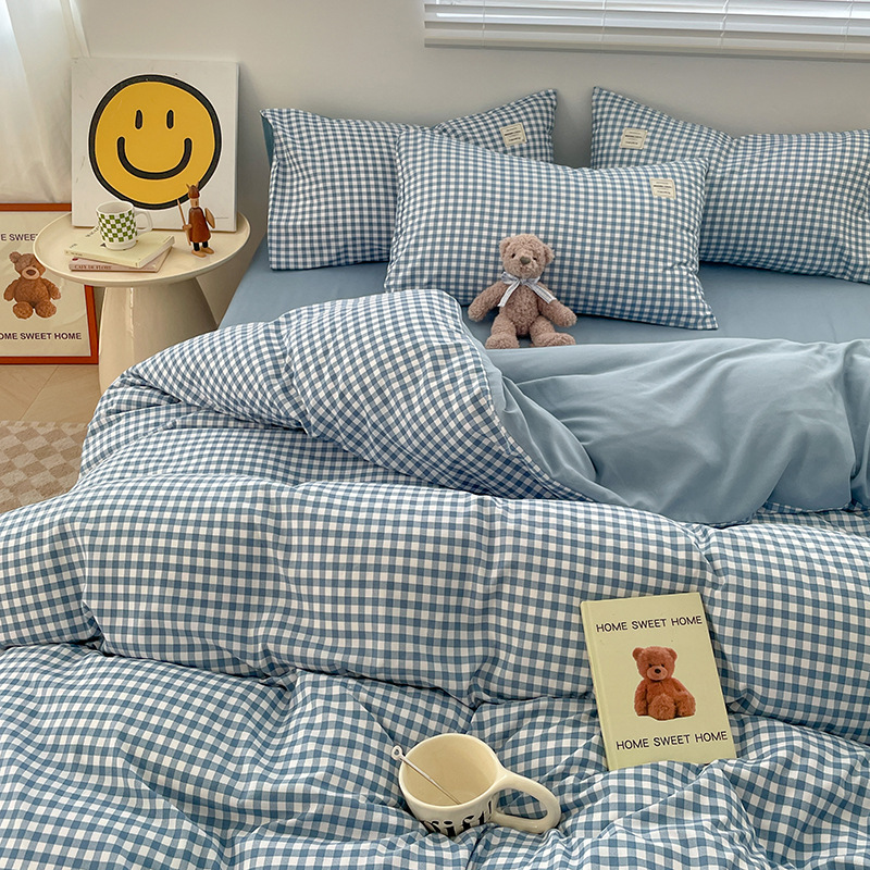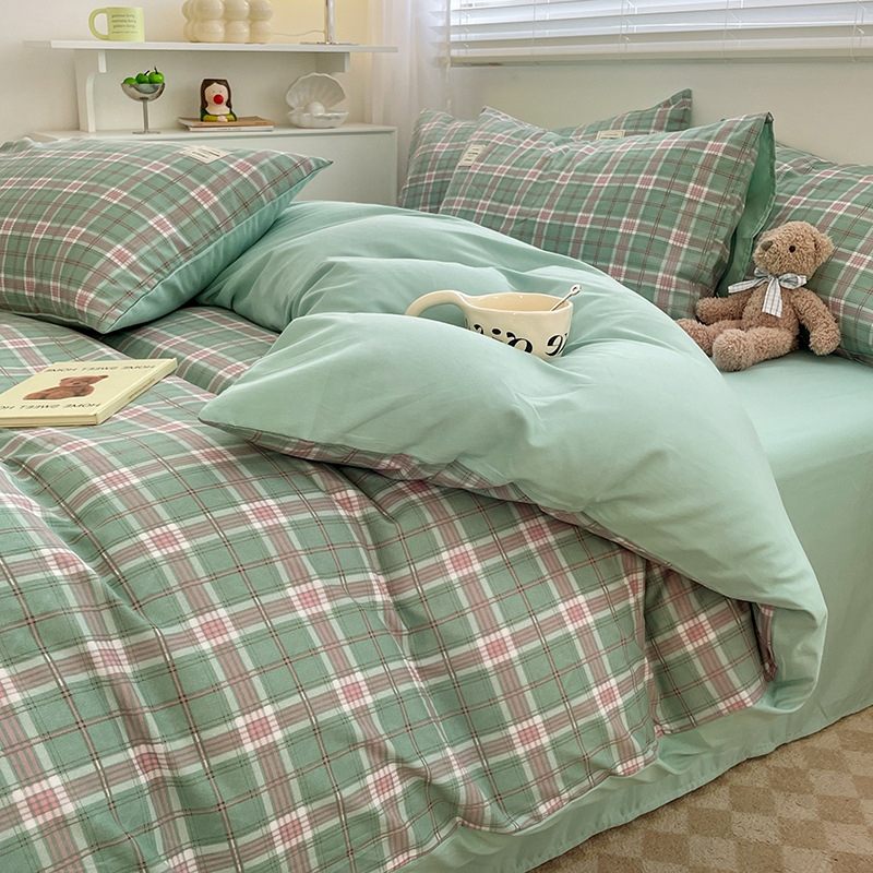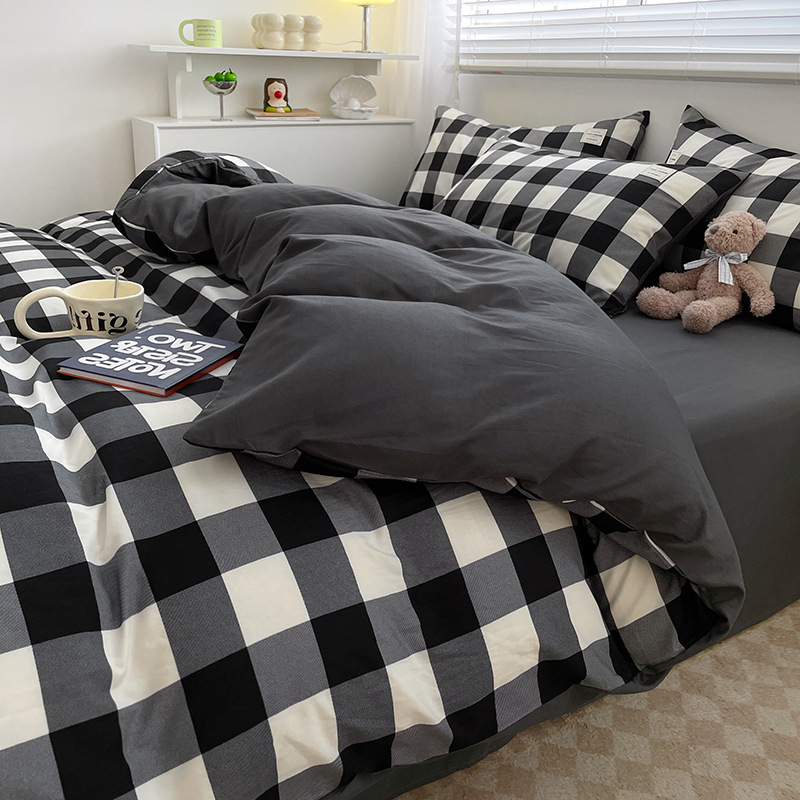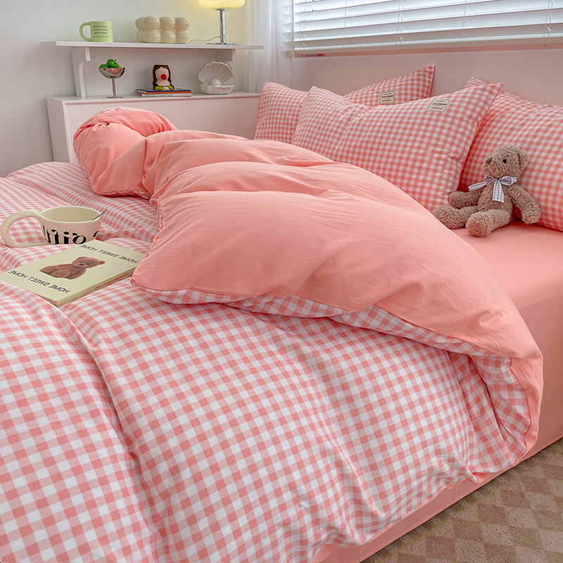 Комплект из четырех предметов из чистого цвета хлопка, японский простой промытый хлопок в стиле ins, Студенческая Простыня из трех предметов, хлопковая одинарная пододеяльник