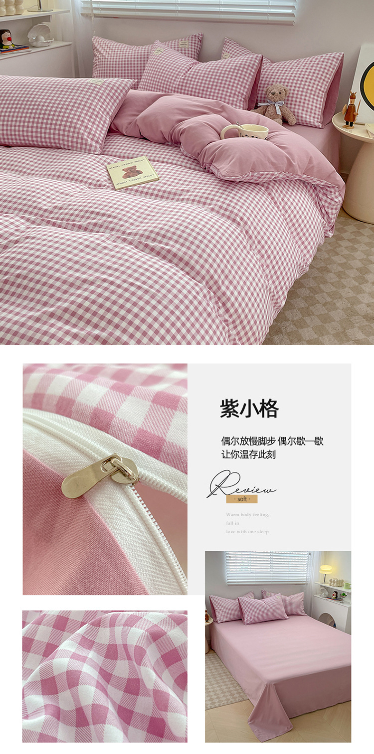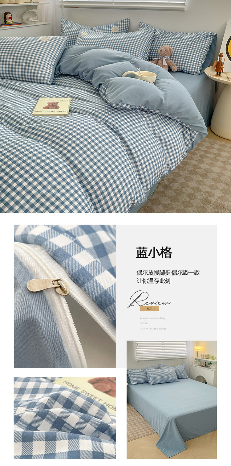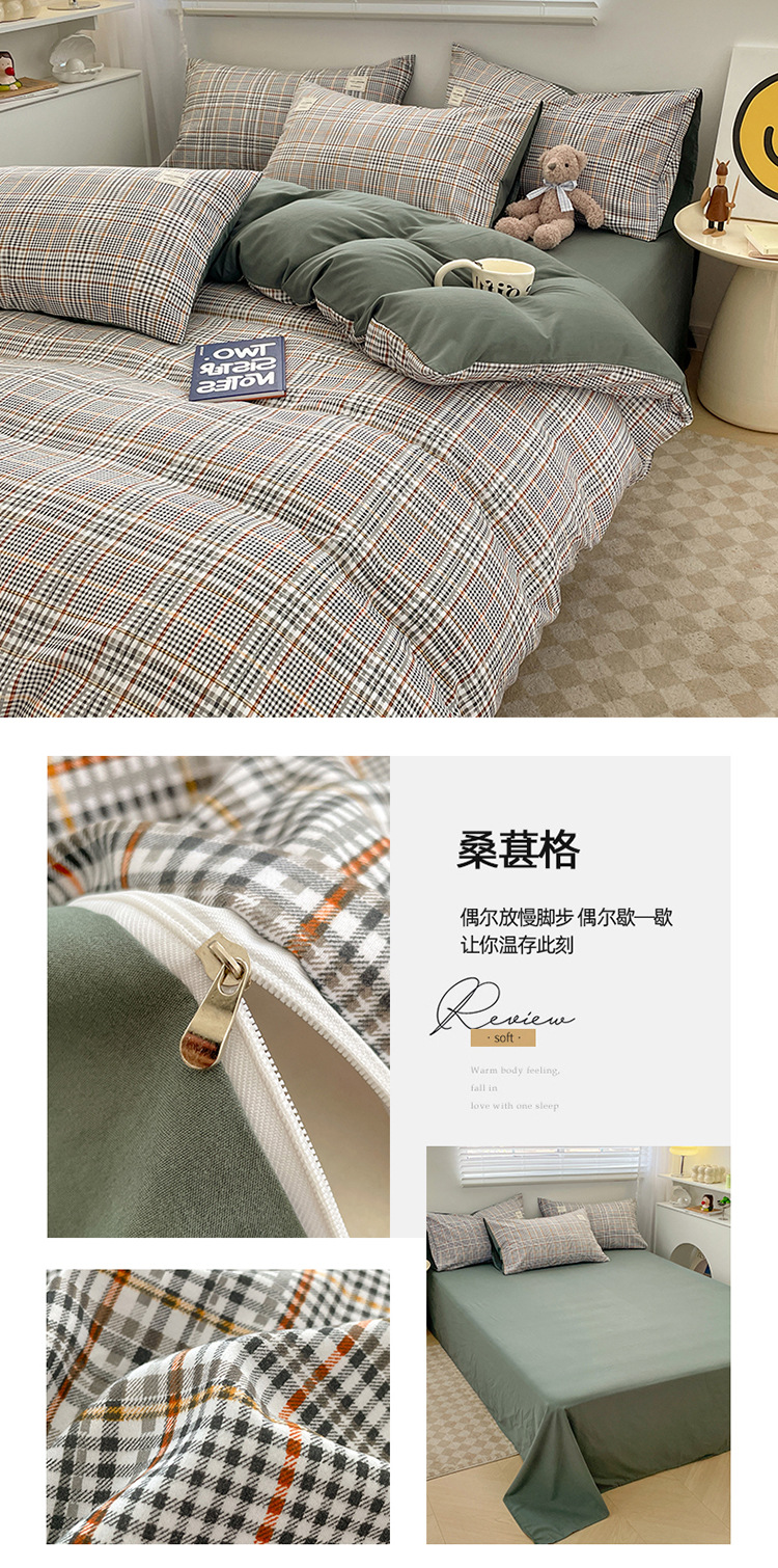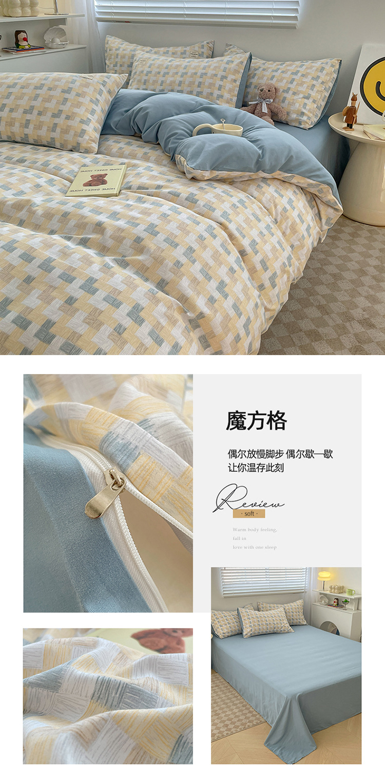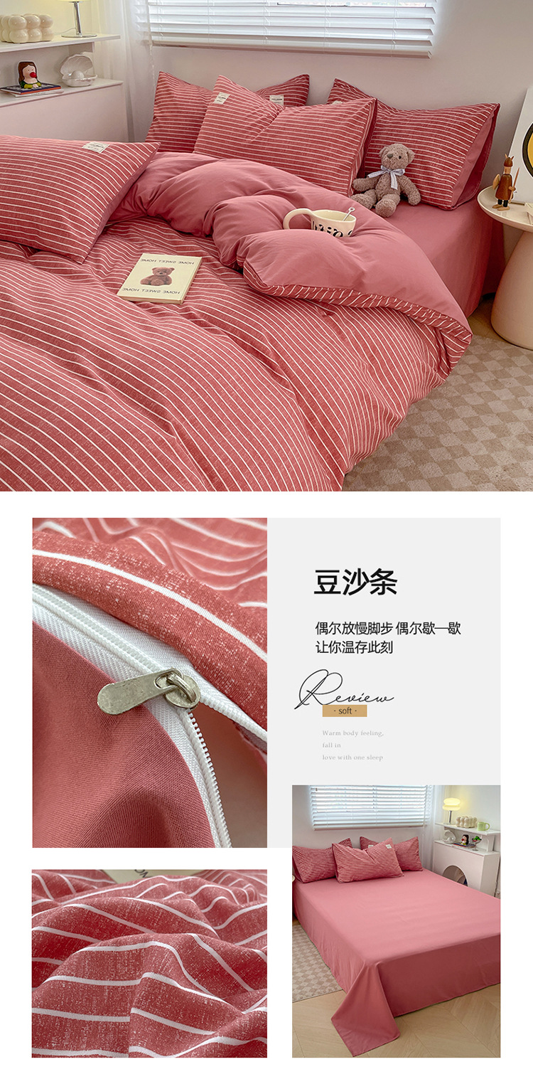 Комплект из четырех предметов из чистого цвета хлопка, японский простой промытый хлопок в стиле ins, Студенческая Простыня из трех предметов, хлопковая одинарная пододеяльник