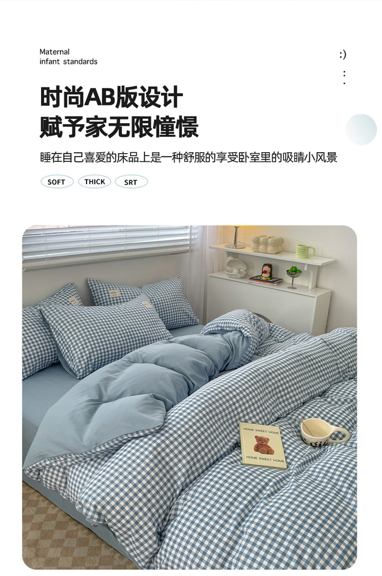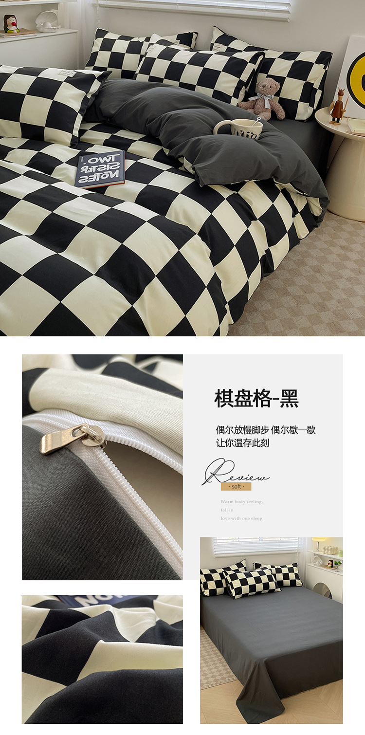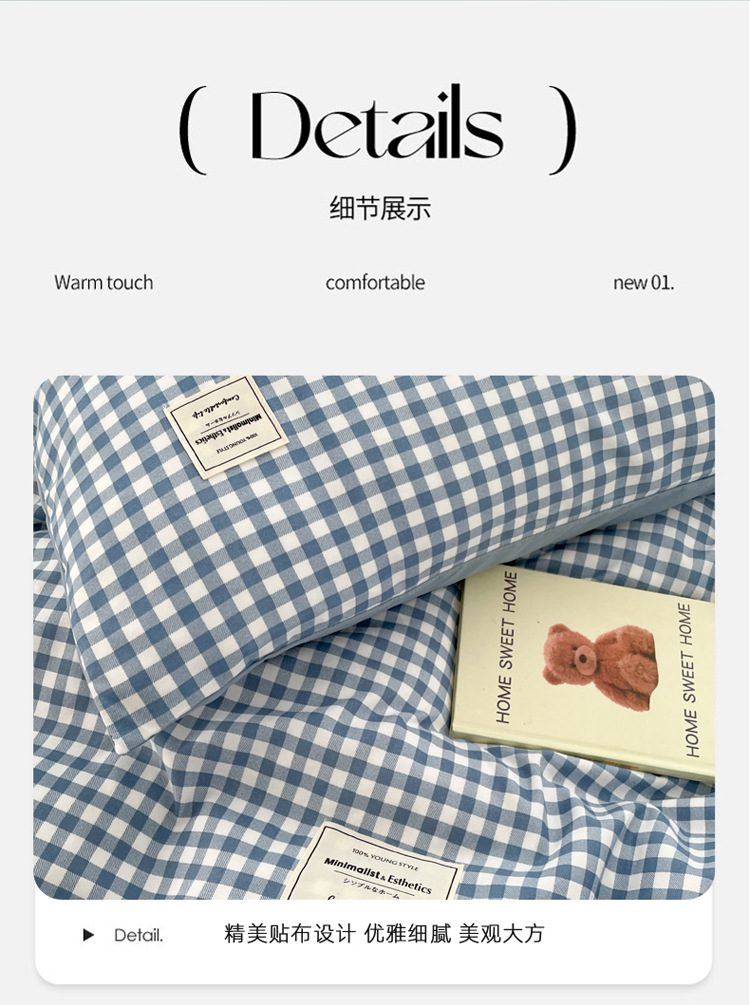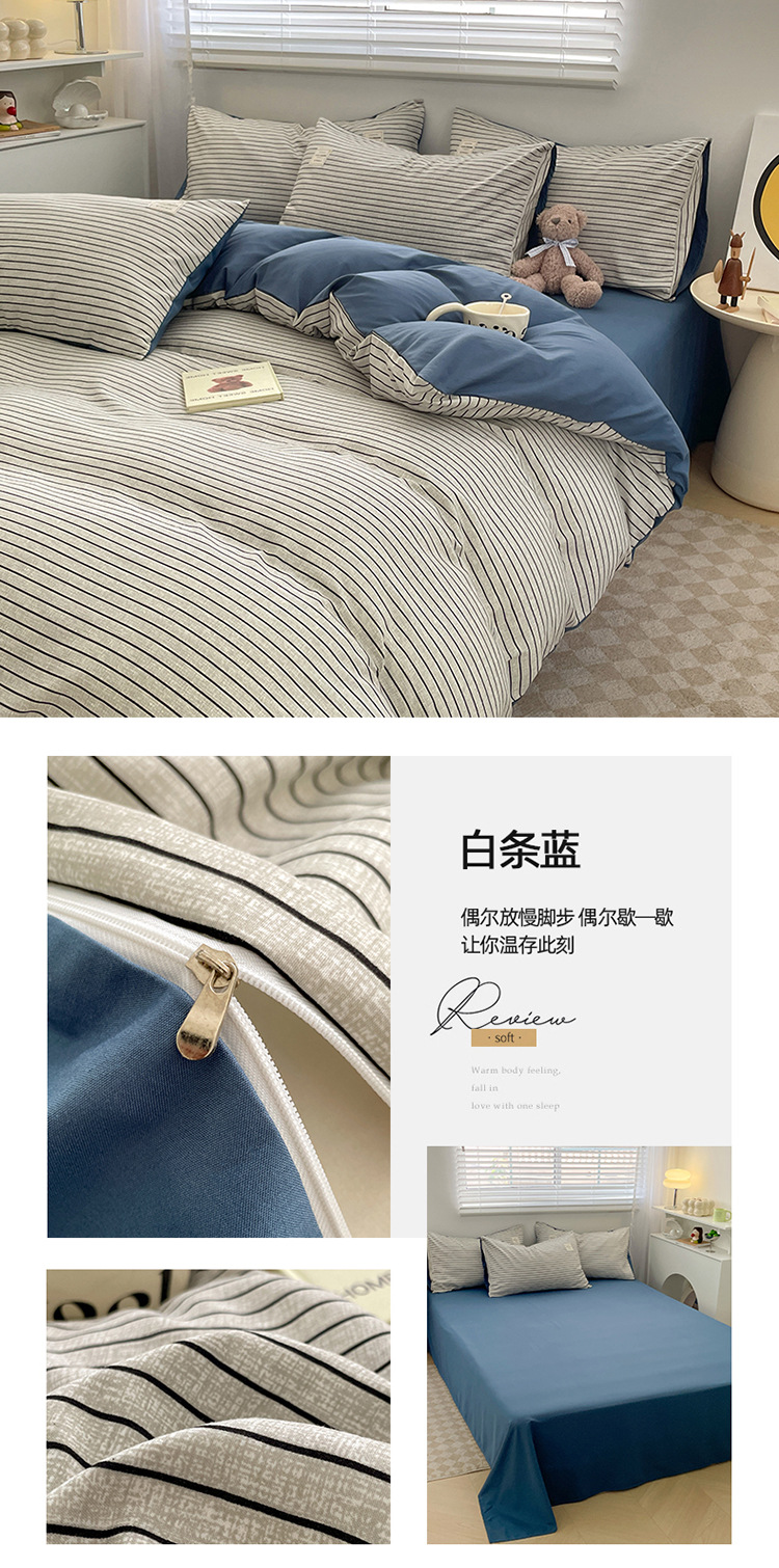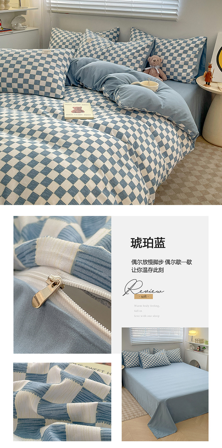 Комплект из четырех предметов из чистого цвета хлопка, японский простой промытый хлопок в стиле ins, Студенческая Простыня из трех предметов, хлопковая одинарная пододеяльник