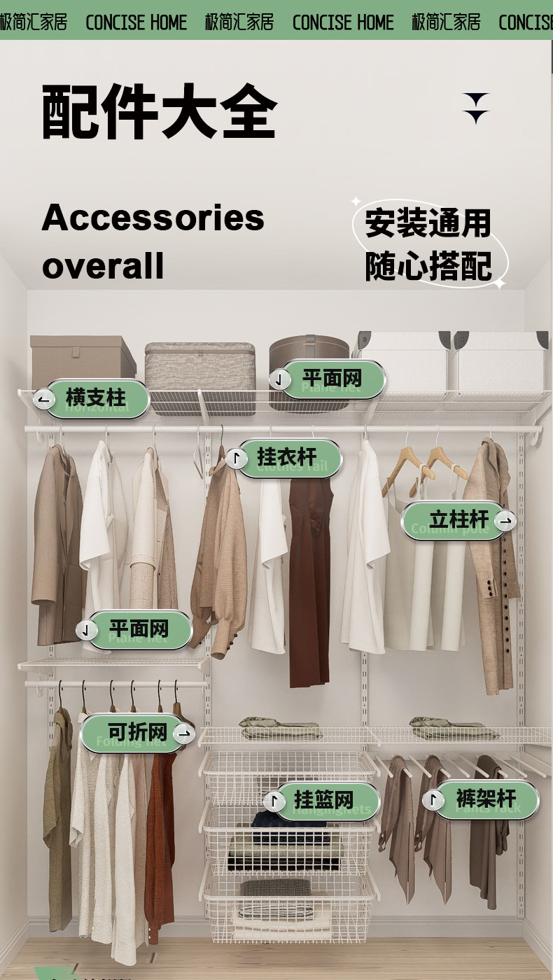 Колонка толщиной 15*25*15 1.5m*2.0.; Колонка толщиной 15*25*15 2.0m*2.0.; Колонка толщиной 15*25*15 2.4m*2.0.; 0.52m *2,5 толщиной горизонтальной колонны; 0.62m *2,5 толщиной горизонтальной колонны; 0.82m *2,5 толщиной горизонтальной колонны; 1.02m *2,5 толщиной горизонтальной колонны; 1.24m *2,5 толщиной горизонтальной колонны; Плоская сетка 505; Плоская сетка 605; Плоская сетка 805; Плоская сетка 1005; Складная сетка 605; Складная сетка 805; Складная сетка 1005; Сетчатая корзина 60 плюс направляющие; 11 подвесных выдвижных штанов.; Однорядная вешалка для брюк (включая направляющие); Двухрядная вешалка для брюк; Кронштейн 435; Кронштейн Holed 435; крюк для труб; 25 круглых стержней*510; 25 круглых стержней*610; 25 круглых стержней*810; 25 круглых стержней*1010; 25 круглых стержней*1210; 25 круглых стержней*1410; 25 круглых стержней*1610