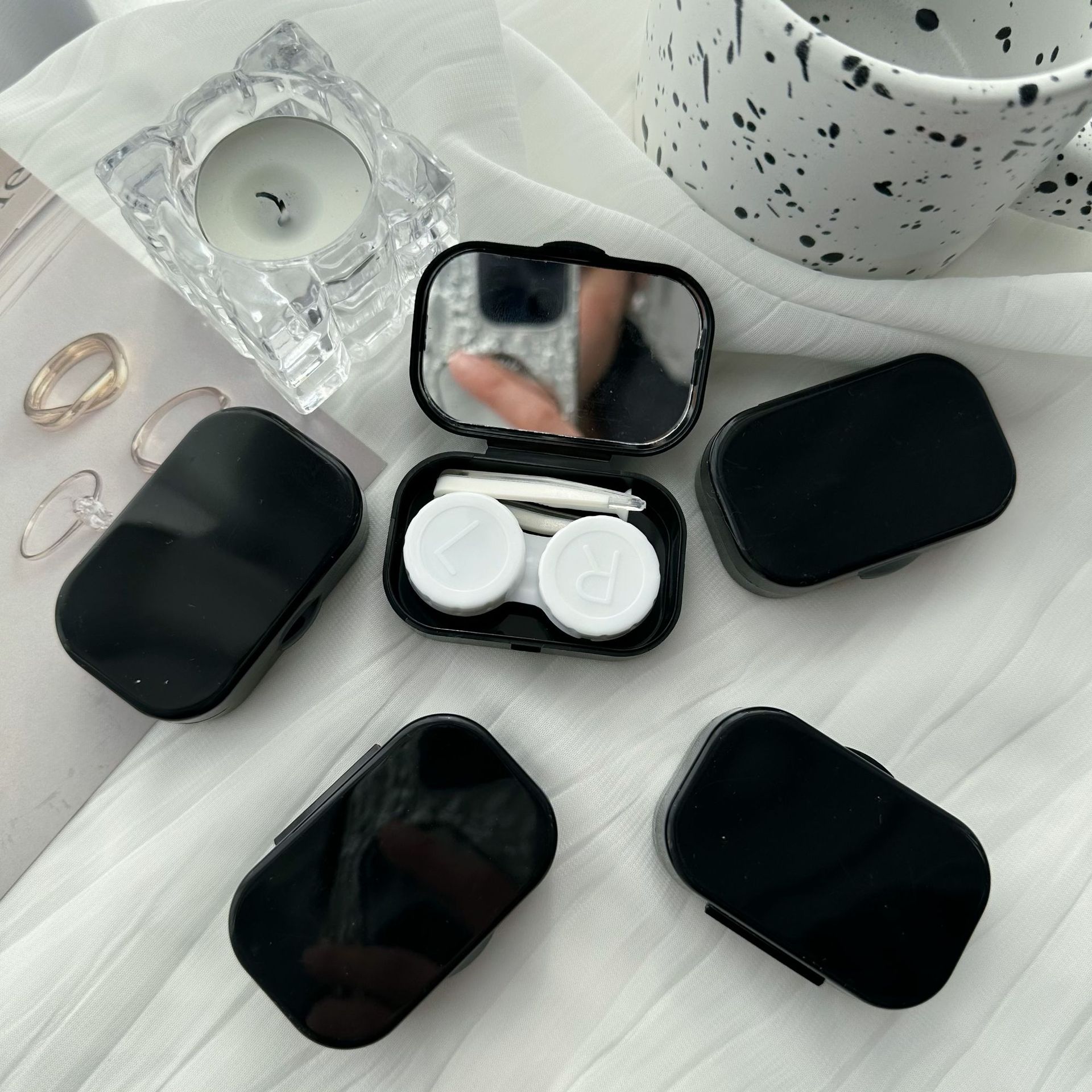 Коробка невидимых очков ветра корейская минималистская передовая портативная сплошная шнуровка зеркала небольшая красивая коробка зрачка оптом