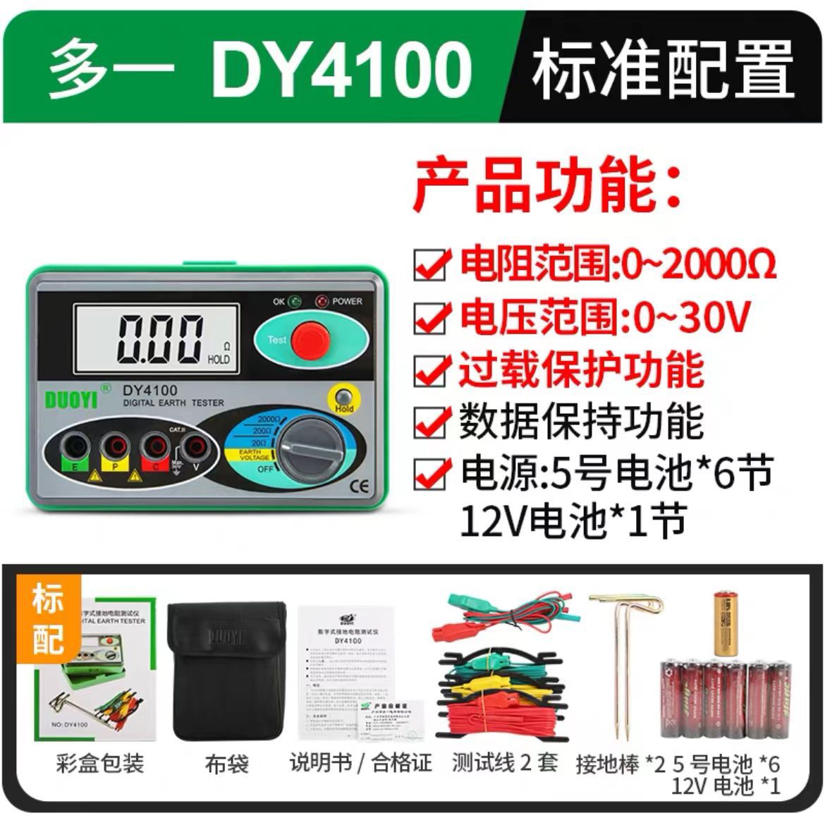 DY4100无电一台:1.9kG; 尺寸:27*22*11cm 箱规:一箱:5台;尺寸:545*278*238MM;重量:10.6kg 。