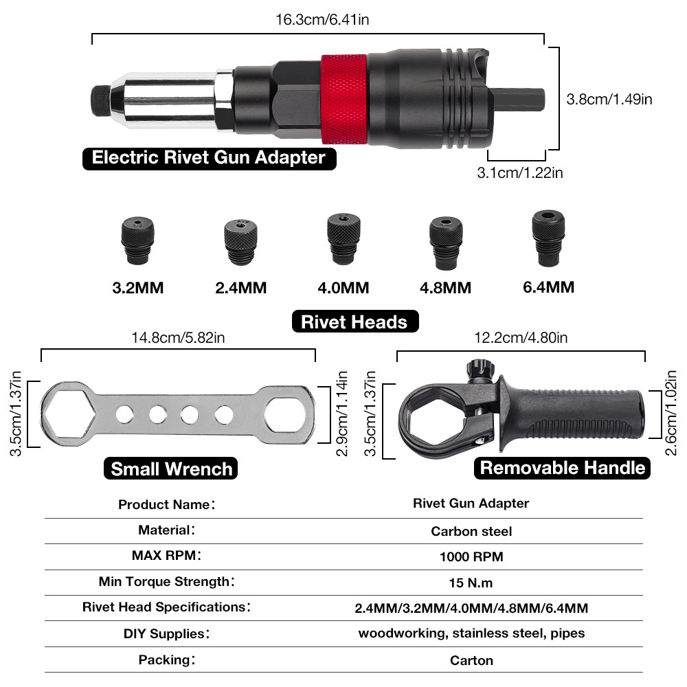 Электрический пистолет для заклепок, преобразовательная головка, пистолет для заклепок, полностью автоматический пистолет для заклепок с гайками, портативный основной корпус из алюминиевого сплава