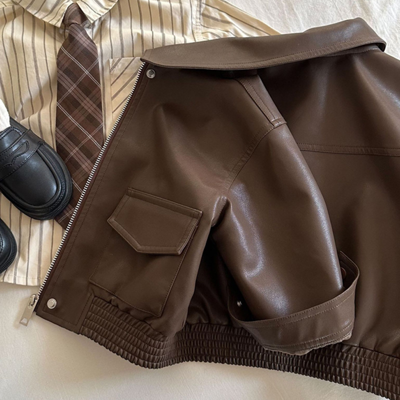 Кожаная одежда с отворотом (плюс бархат); Коричневая кожаная куртка (плюс бархат); Черно-белая кожаная куртка (плюс бархат); Кожаная одежда с отворотом; Кожаная одежда с воротником