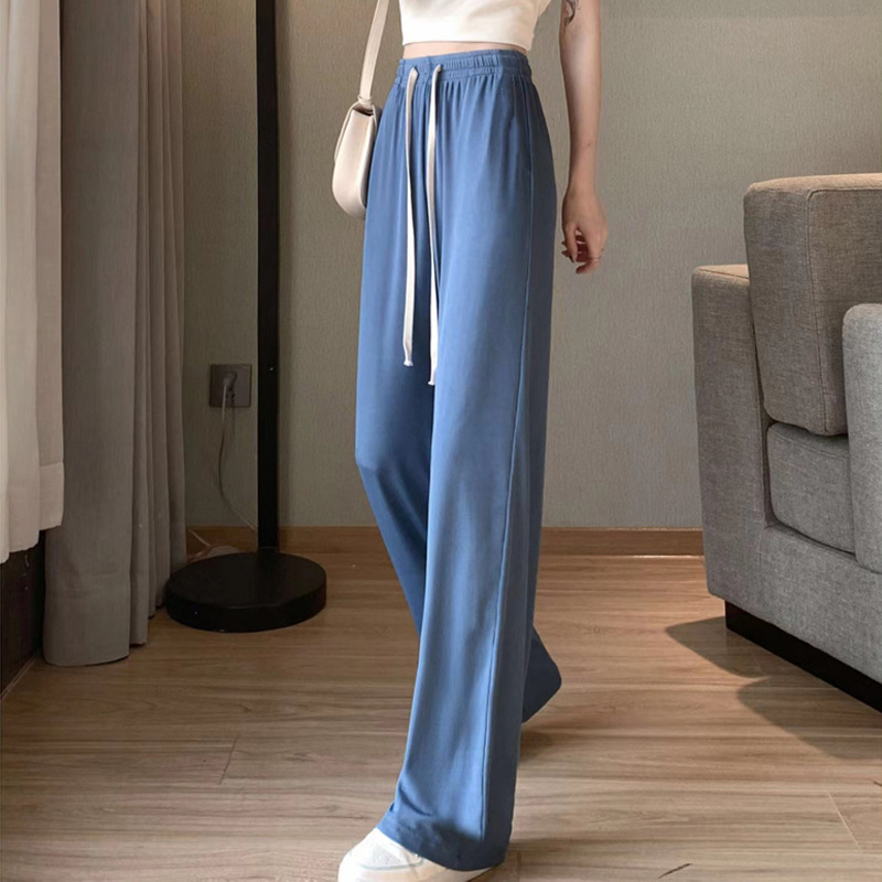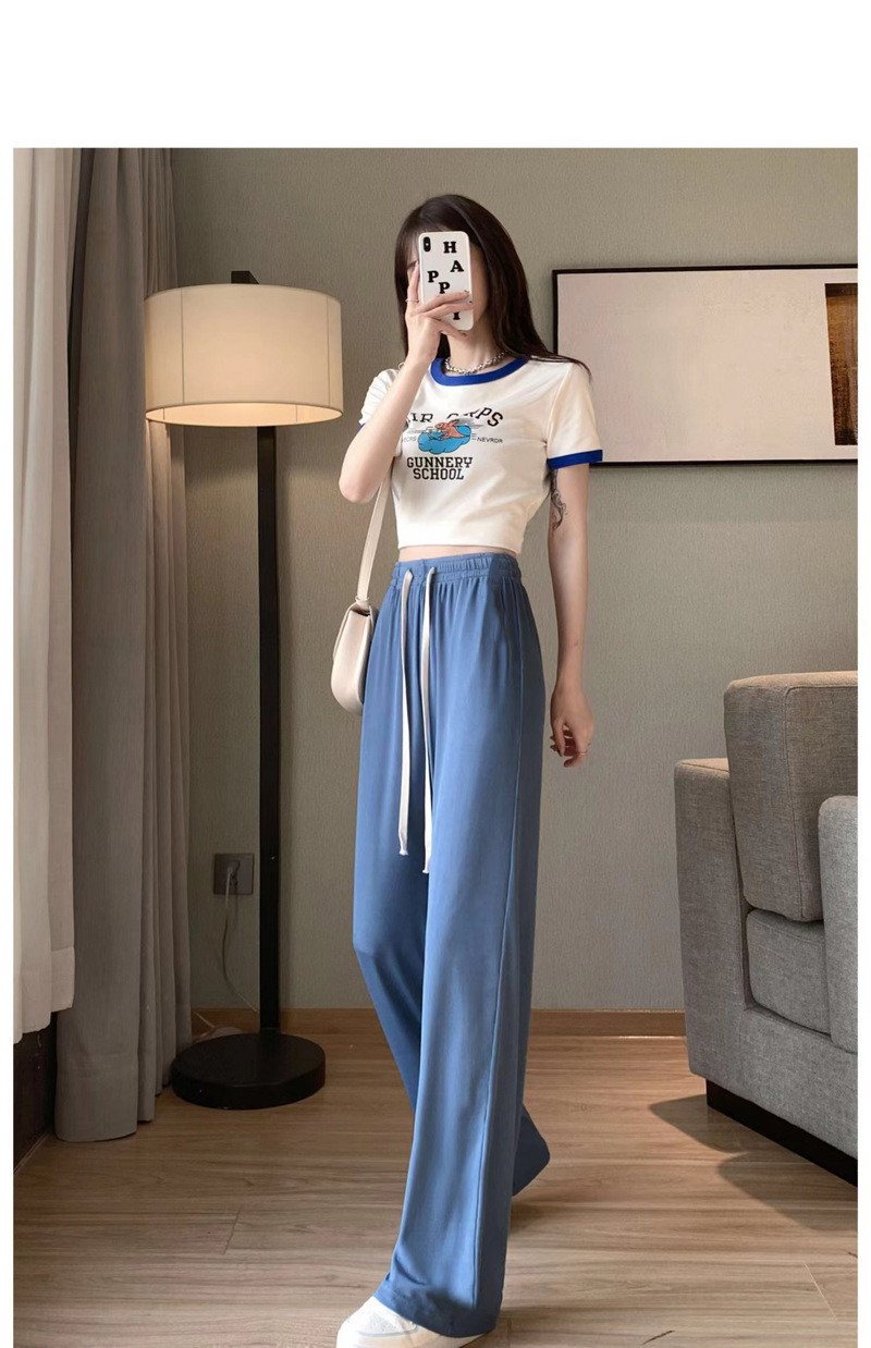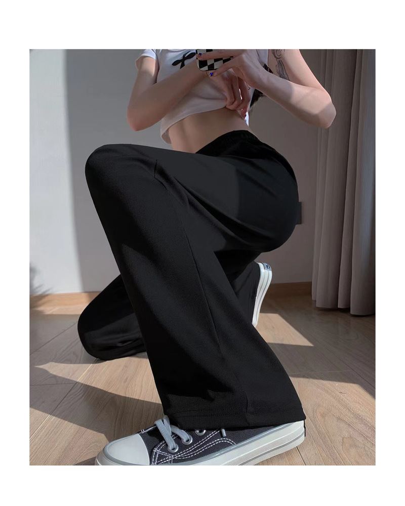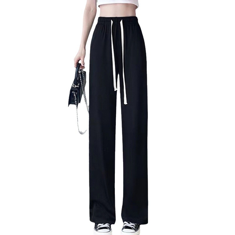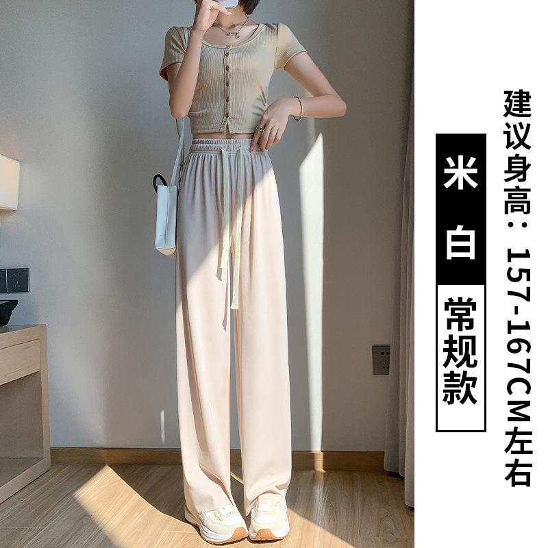 Летние широкие брюки женские прямые спортивные брюки 2024 новые белые повседневные брюки с маленькой завышенной талией и драпировкой