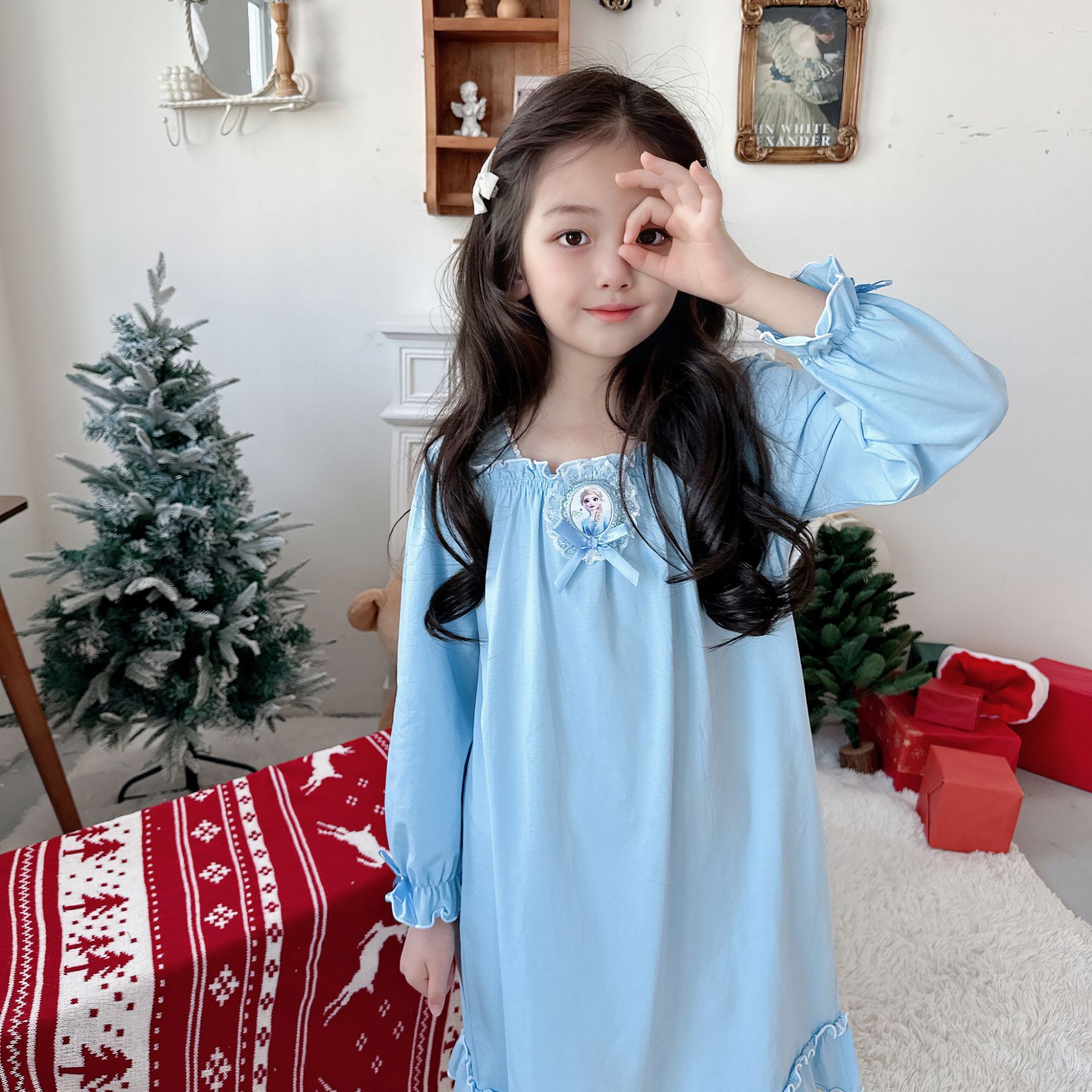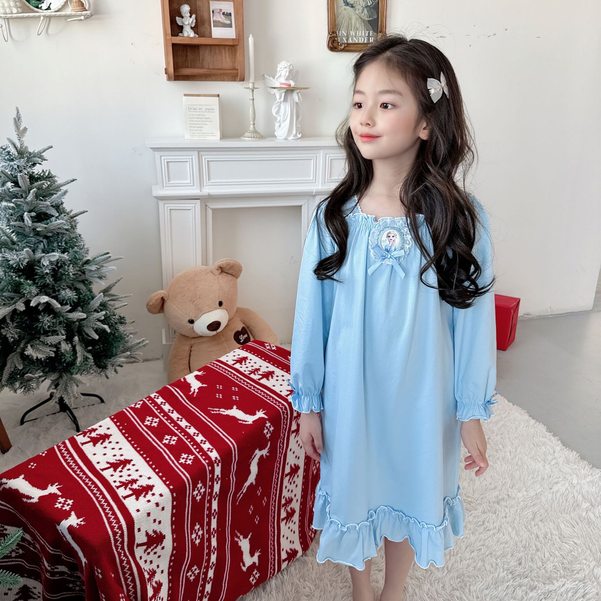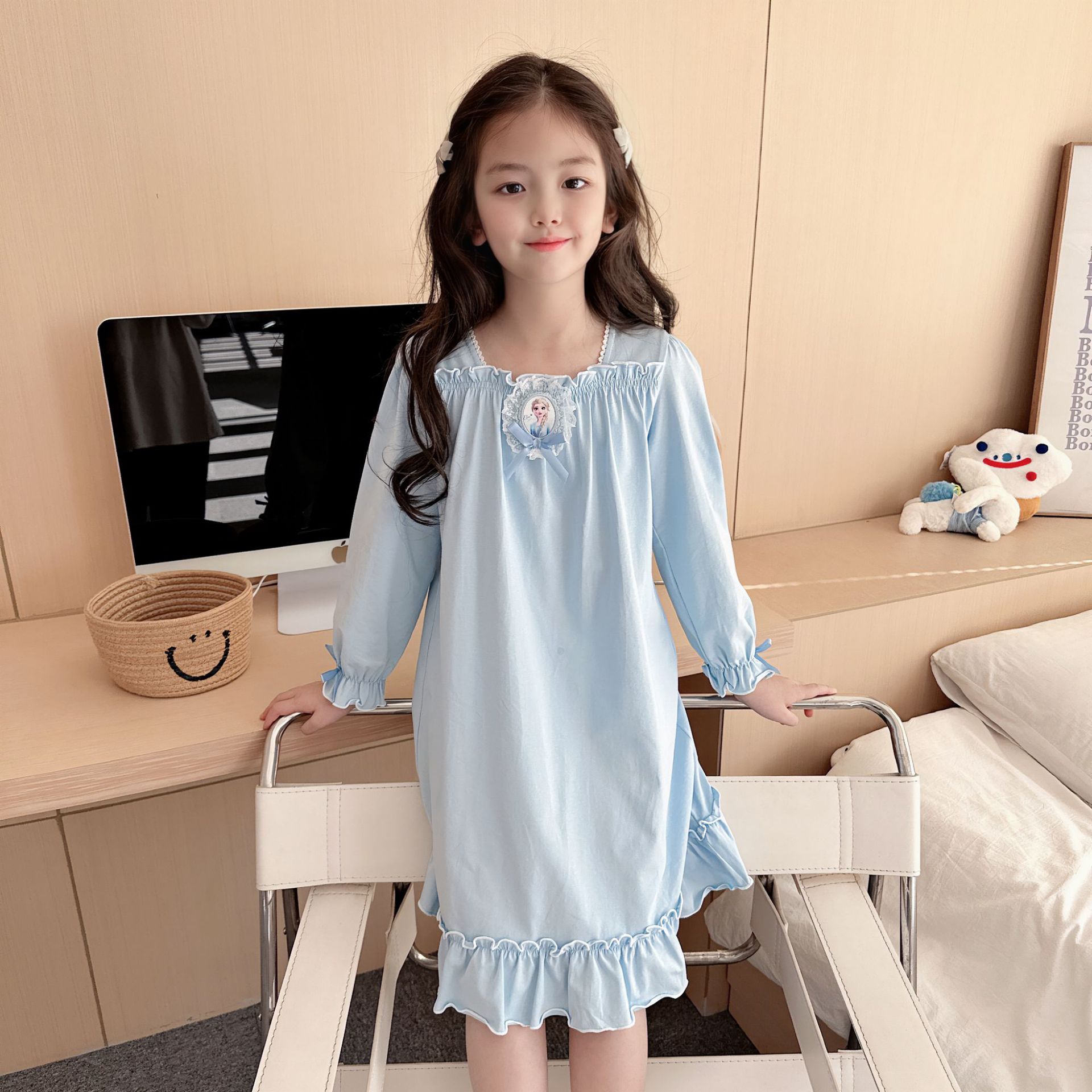 Оригинальная новая девушка хлопковая домашняя одежда с длинными рукавами бутик длинная юбка Frozen Aйша домашняя одежда пижама ночная юбка