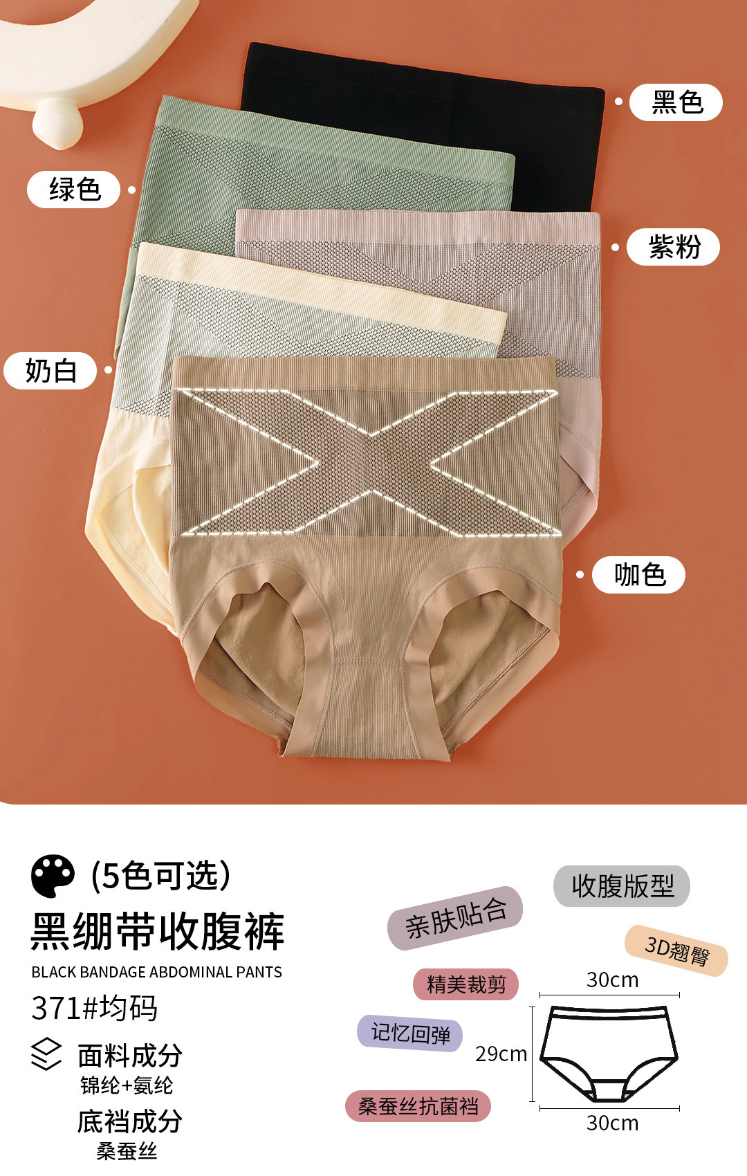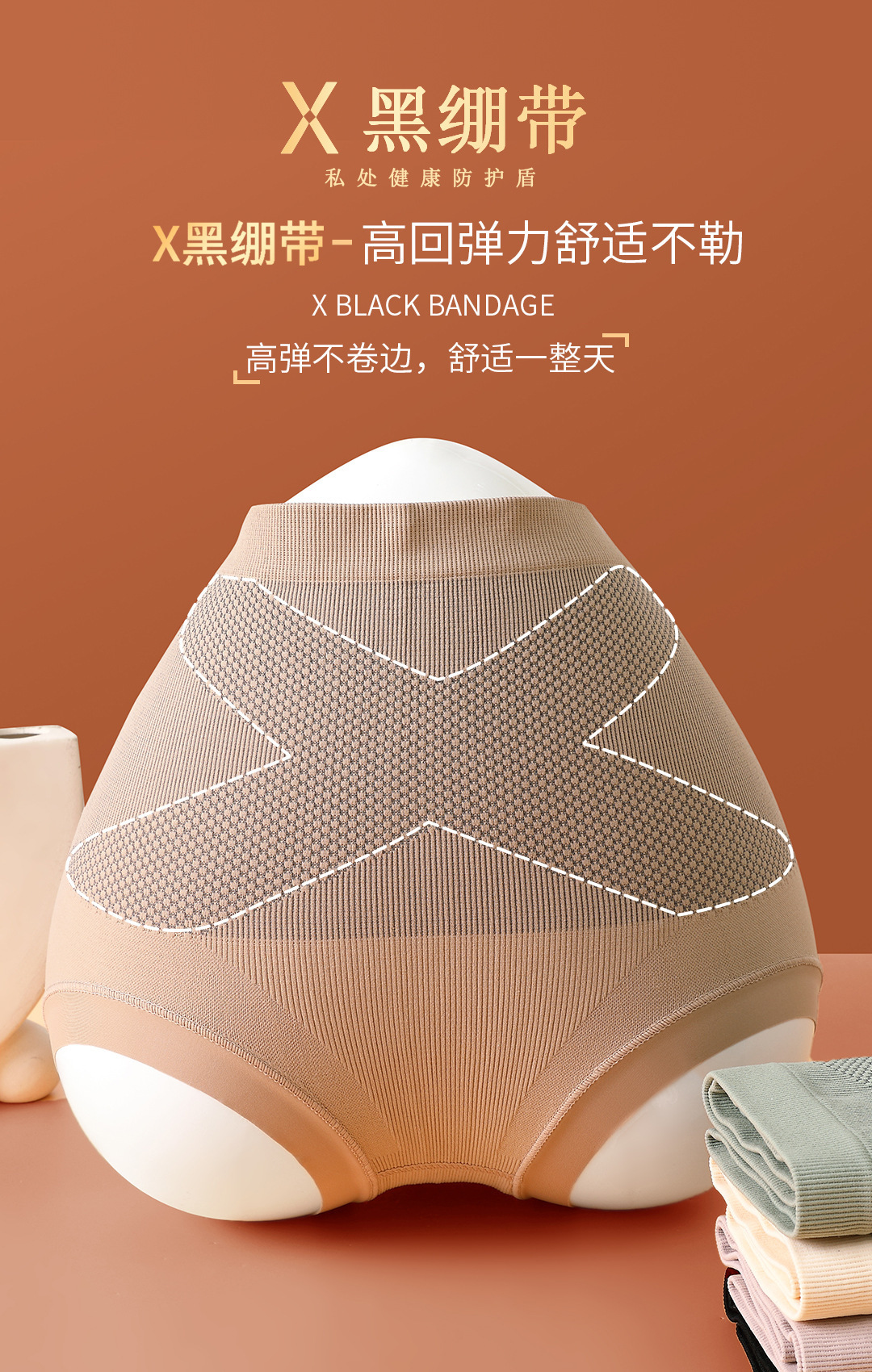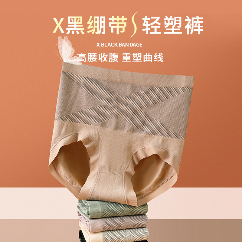 Tiktok в том же стиле [X черная повязка] Высокая талия эластичные увлажняющие брюки для формирования живота шелковое нижнее белье для коррекции бедер