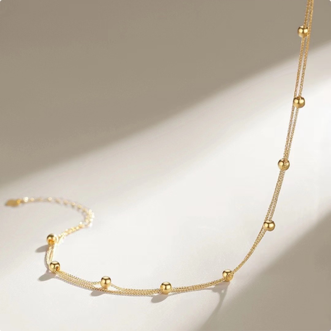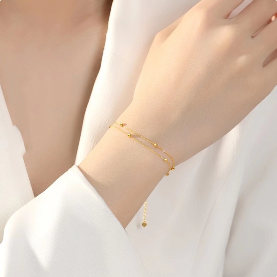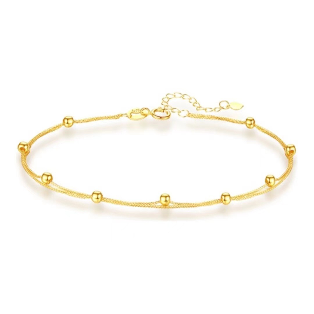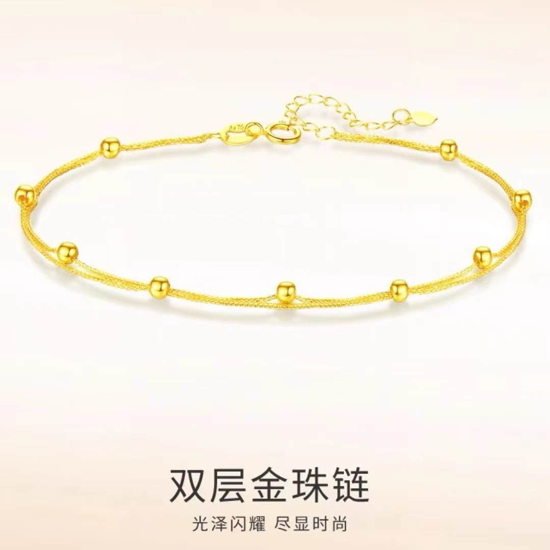 Женский браслет из золота 18 карат, золотой браслет au750 цвета, двухслойные переносные бусины, подарок на Новый год для подруги