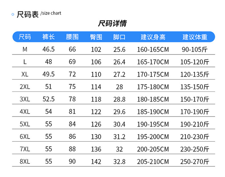 M; L; XL; 2XL; 3XL; 4XL; 5XL; 6XL; 7XL; 8XL