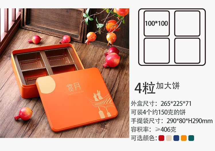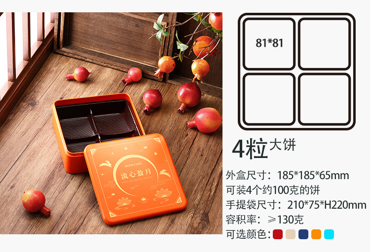 Середина осени коробка упаковки торта луны 125g180g4 коробка торта кожи льда Луны пустая коробка Подарочная коробка высокого класса квадратная железная коробка